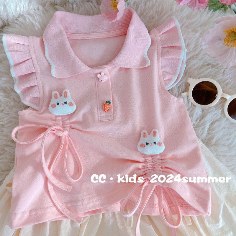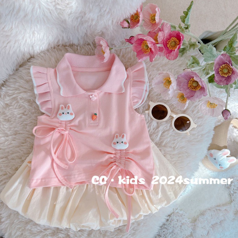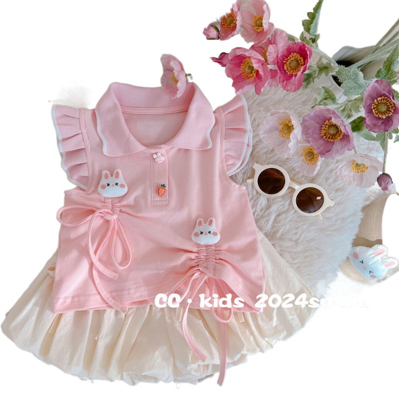 | nameOriginal | Girls' Summer suit 2024 New Girls' Baby Cute Rabbit Flying Sleeve Top Children's Two-piece Set |