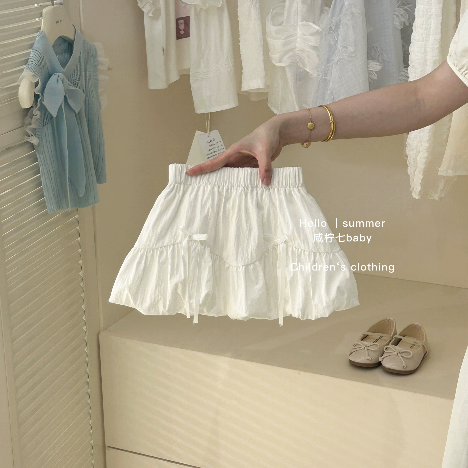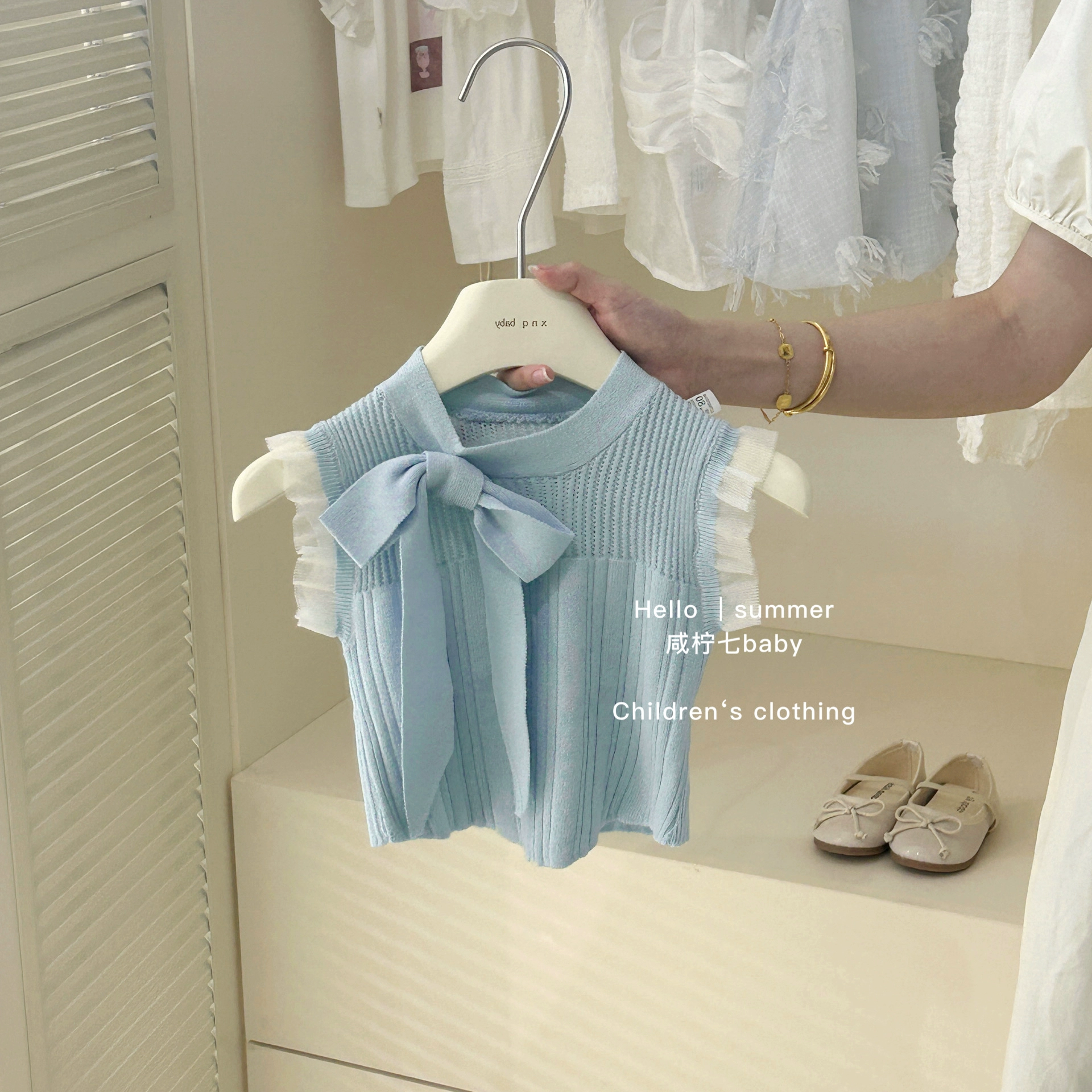 | nameOriginal | Girls summer suit 2024 new style children's bow knitted vest top flower bud skirt two-piece set |
