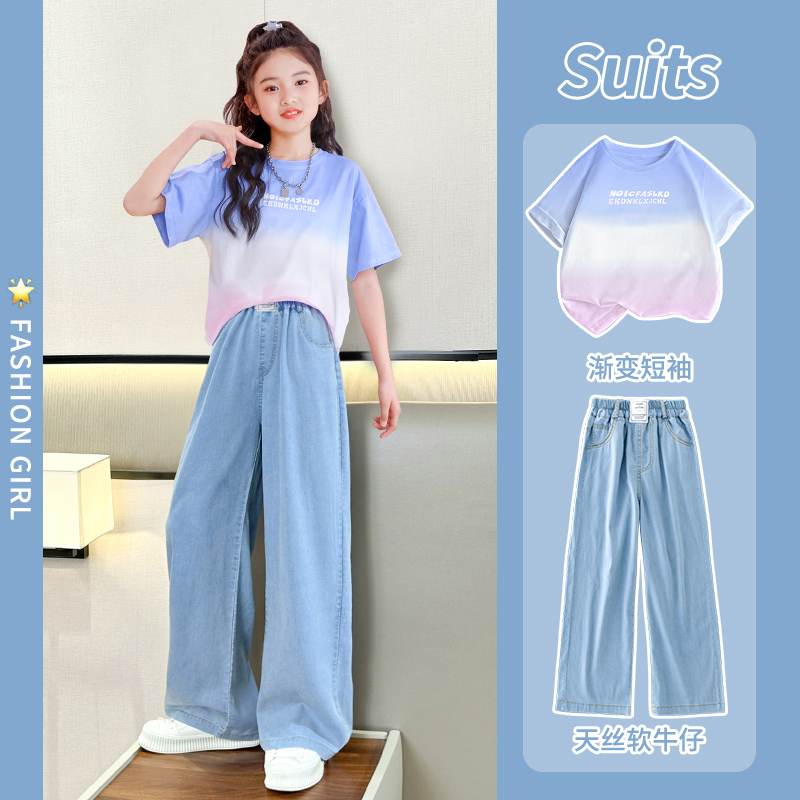 | nameOriginal | Girls summer suit children 2024 new summer dopamine big children western style fashionable short sleeve summer two wholesale |