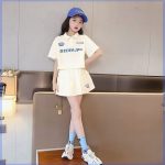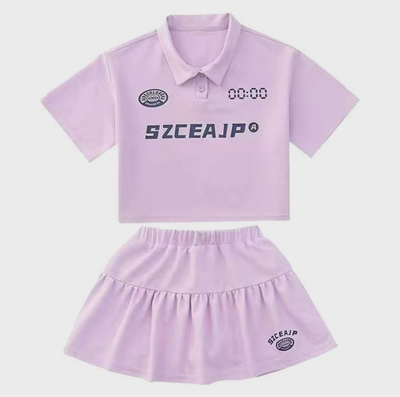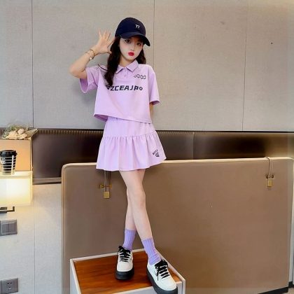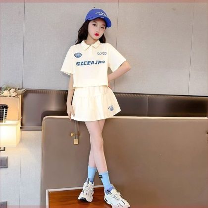 Girls’ Summer suit Polo Shirt New Cyber Popular Short-sleeved Slimming Skirt Two-piece Set for Big Kids Casual Sports