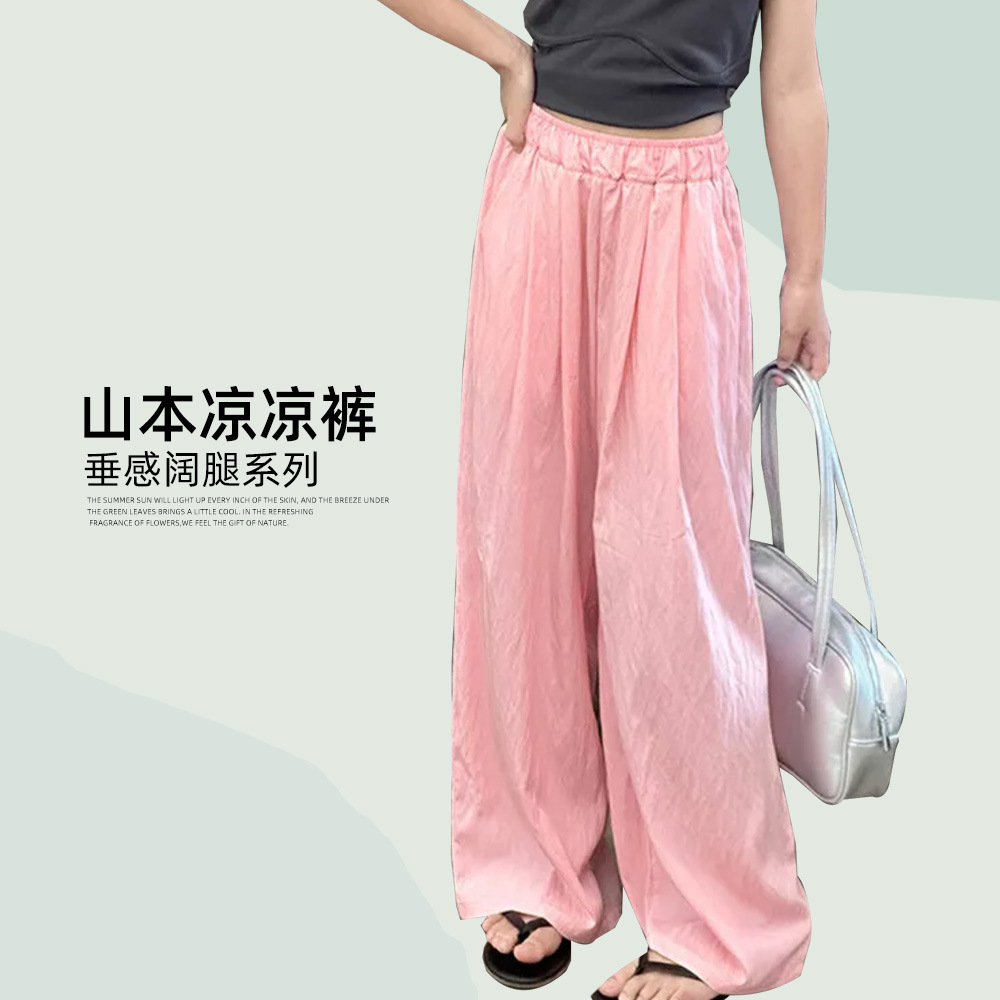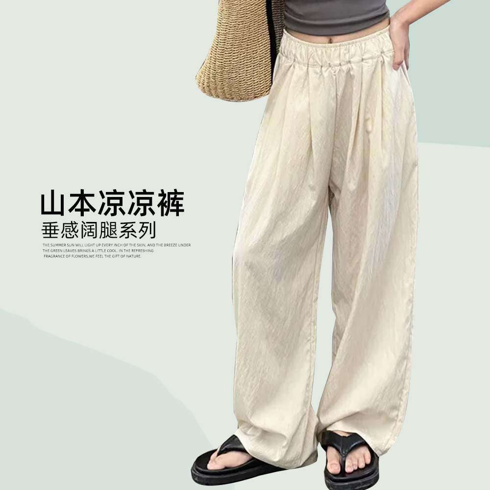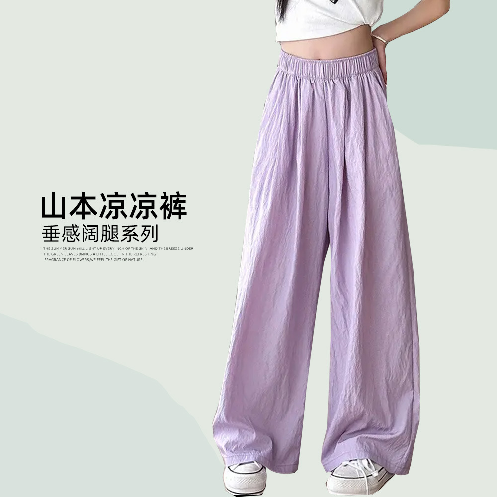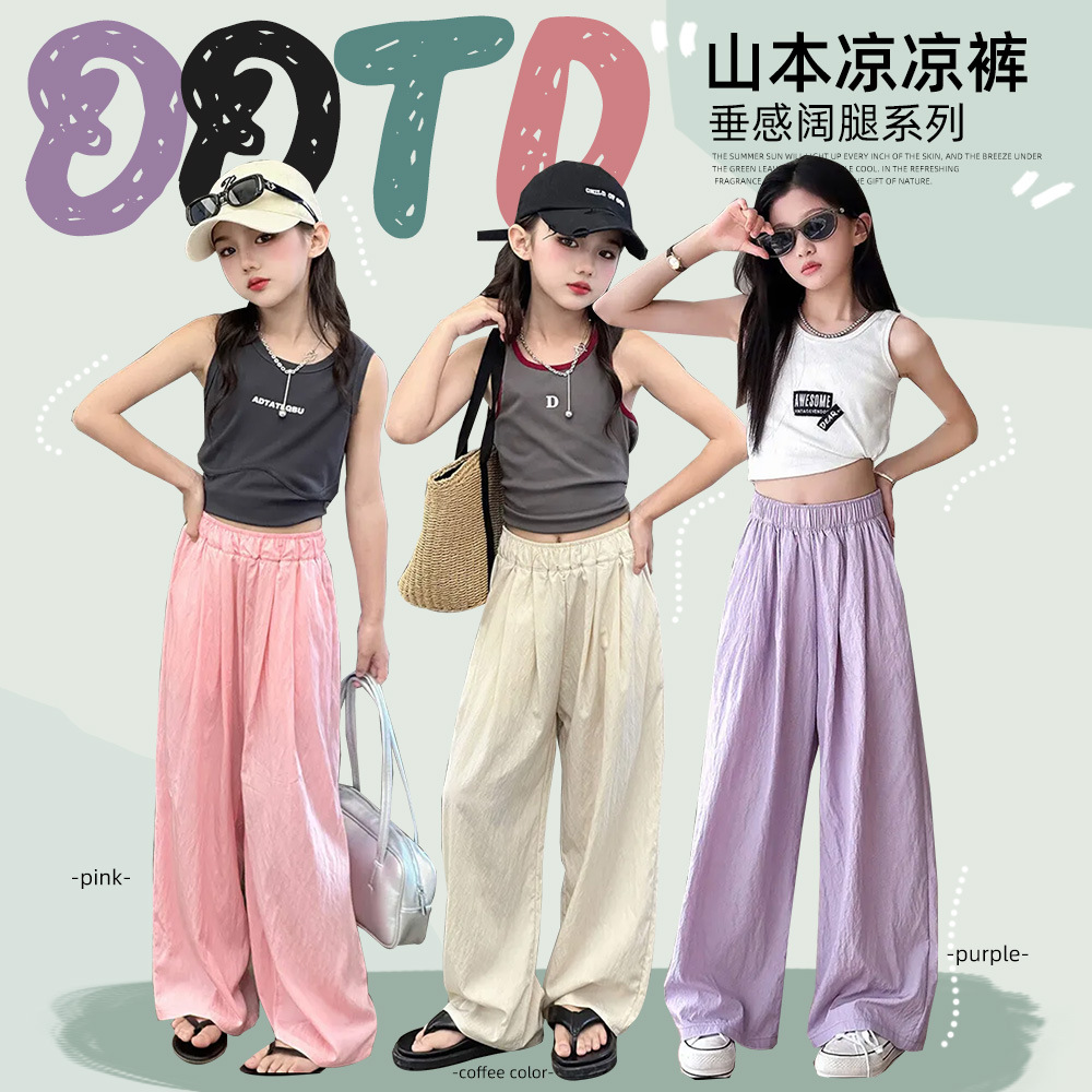 Girls' Summer Trousers Children's Thin Loose Crepe Pants Basing Wide Leg Pants for Babies' Ice-feeling Casual Pants Anti-mosquito Pants