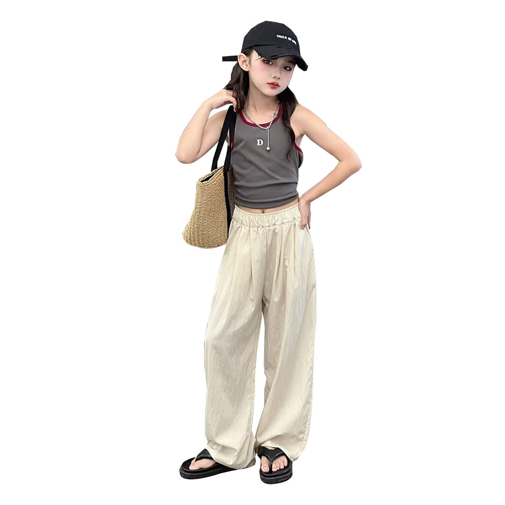 Girls’ Summer Trousers Children’s Thin Loose Crepe Pants Basing Wide Leg Pants for Babies’ Ice-feeling Casual Pants Anti-mosquito Pants