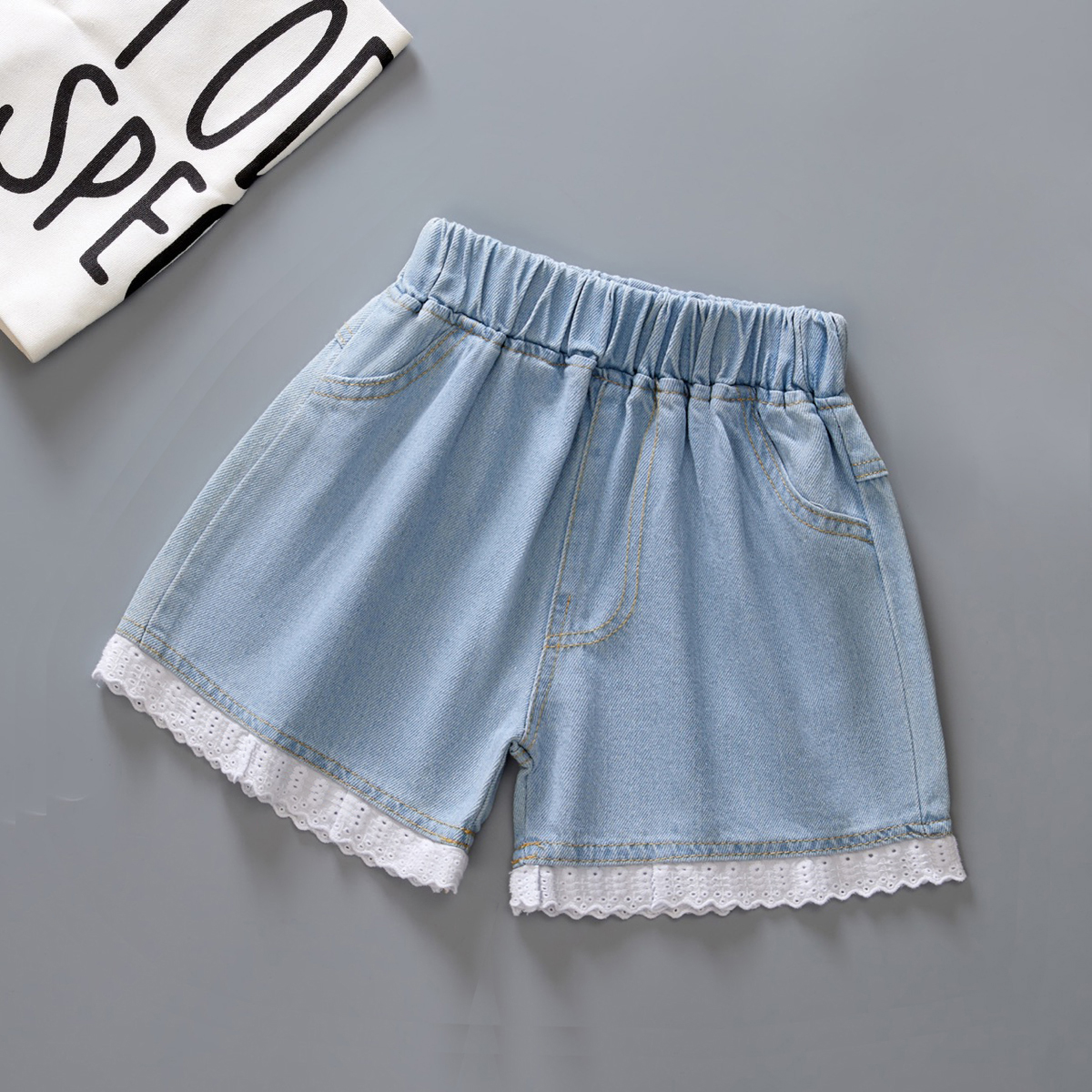 | nameOriginal | Girls' summer wear 2024 New thin Western style outer wear medium and big Children baby girls' all-matching children's Denim shorts lace fashion |