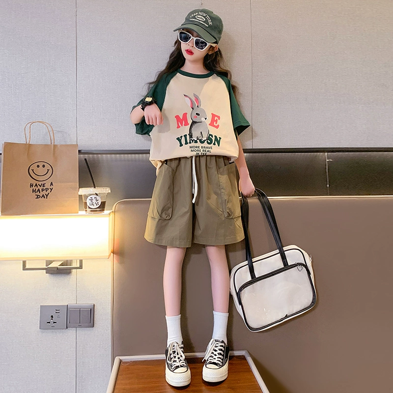 | nameOriginal | Girls Summer Wear Set 2024 Summer New Style Fashionable Big Children's Wear Pure Cotton Short Sleeve T-shirt Two-piece Set |