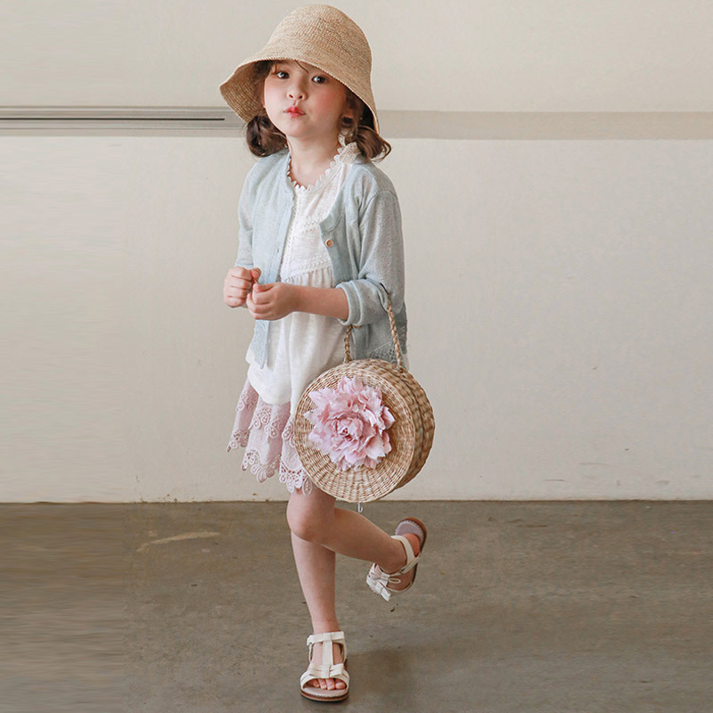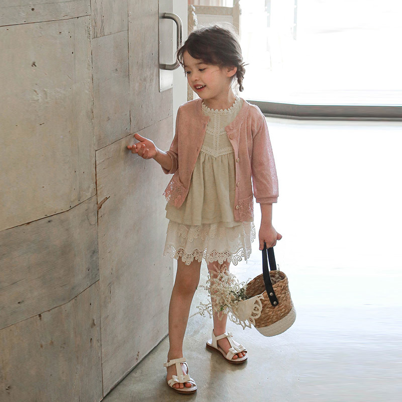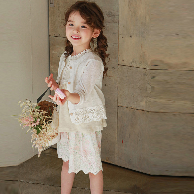 Girls Sunscreen Shirt 2024 Korean Children Girls Western Lace Light Soft Knitted Cardigan Spot