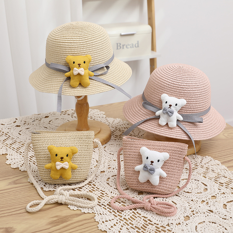 | nameOriginal | Girl's Sunshade Hat Summer Girl's Baby Cute Princess Sunscreen Straw Hat Kids Cartoon Bear Big Beanie Beach Hat |