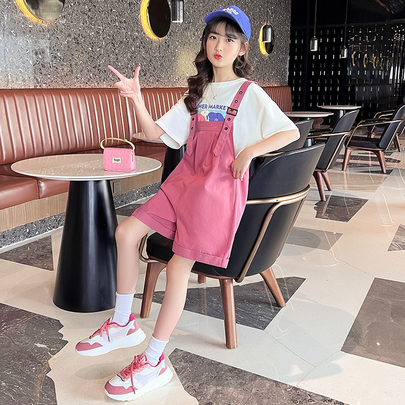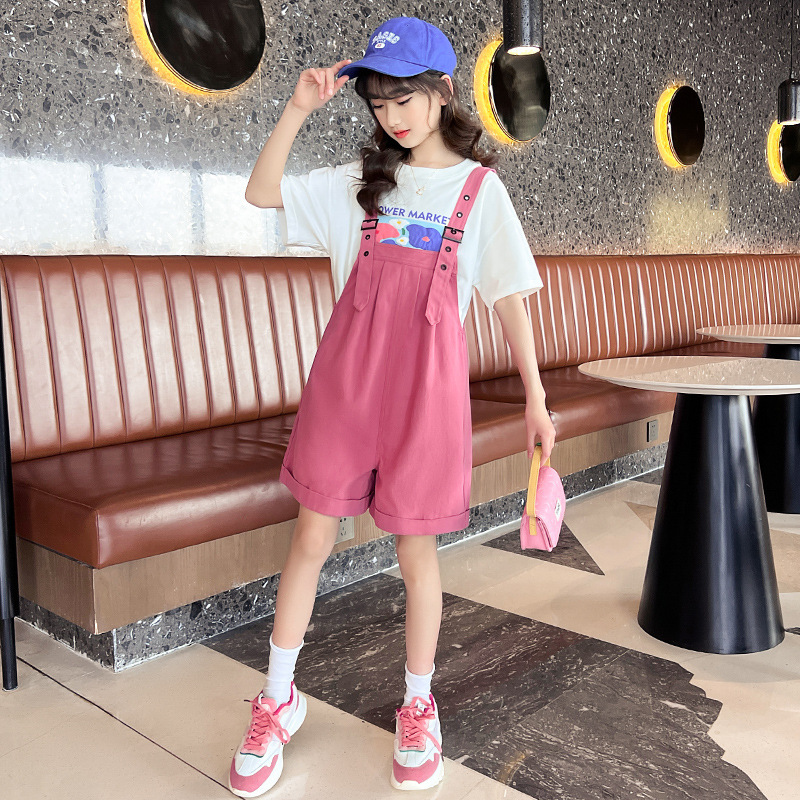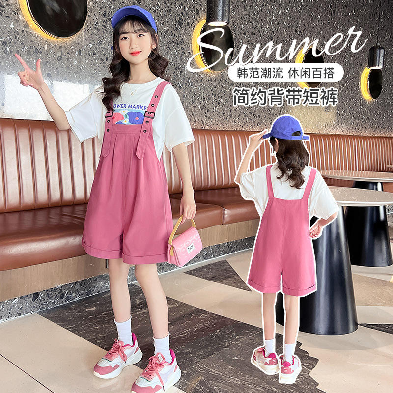 Girls’ suspenders summer new Korean version of the big children’s fashionable pants children’s western style shorts tide a generation of hair
