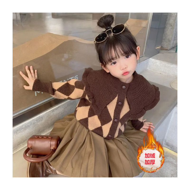 Girls' Sweater 2023 New Autumn Clothes Children's Retro Western Style Thickened Baby's Knitted Cardigan Spring and Autumn Jacket