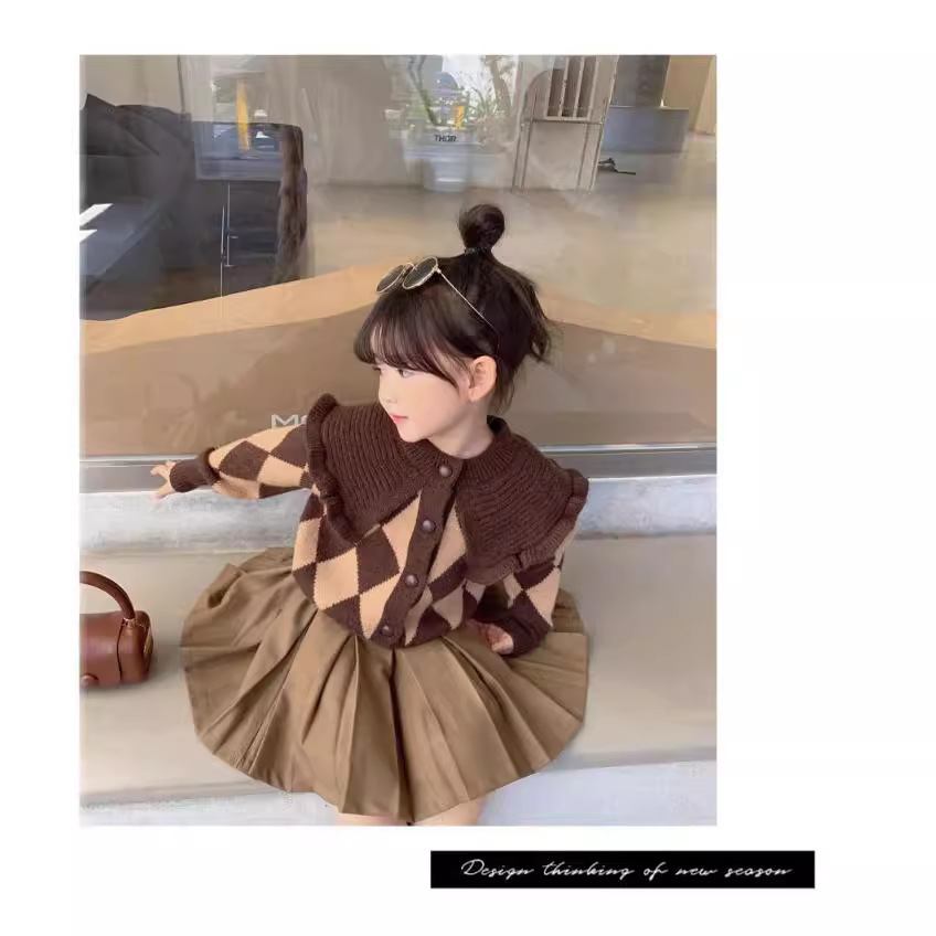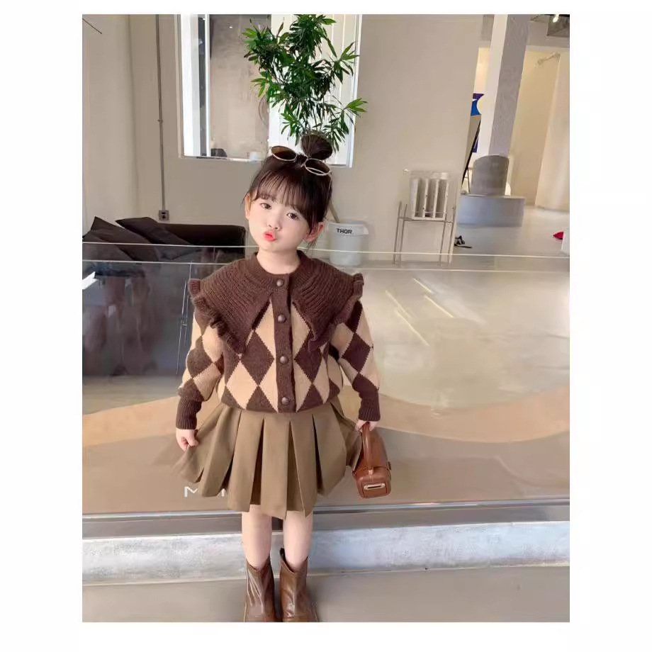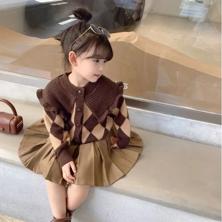 Girls’ Sweater 2023 New Autumn Clothes Children’s Retro Western Style Thickened Baby’s Knitted Cardigan Spring and Autumn Jacket