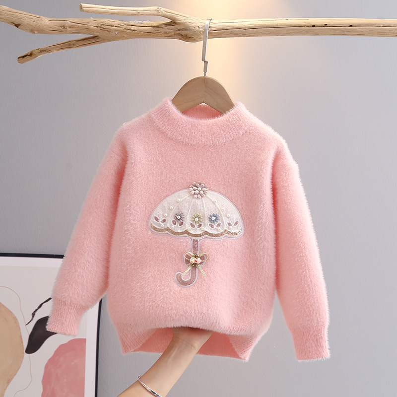 | nameOriginal | Girls' sweater 2024 autumn and winter pullover knitted faux mink velvet round neck children's little girl baby children's clothing fashion |