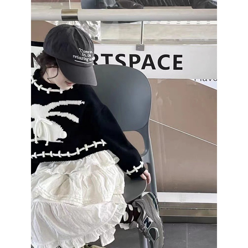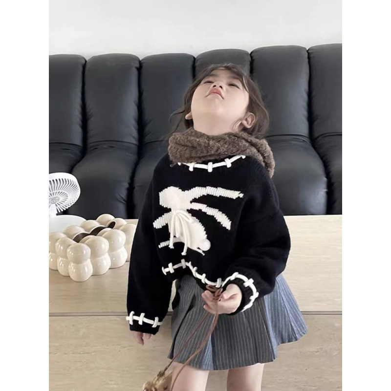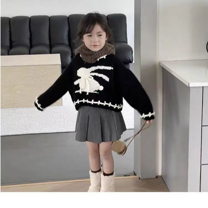 Girls’ sweater 2024 new autumn baby girls’ rabbit knitted sweater college style top Korean style fashionable