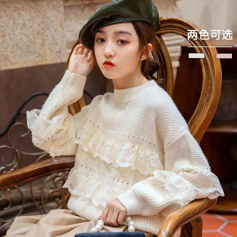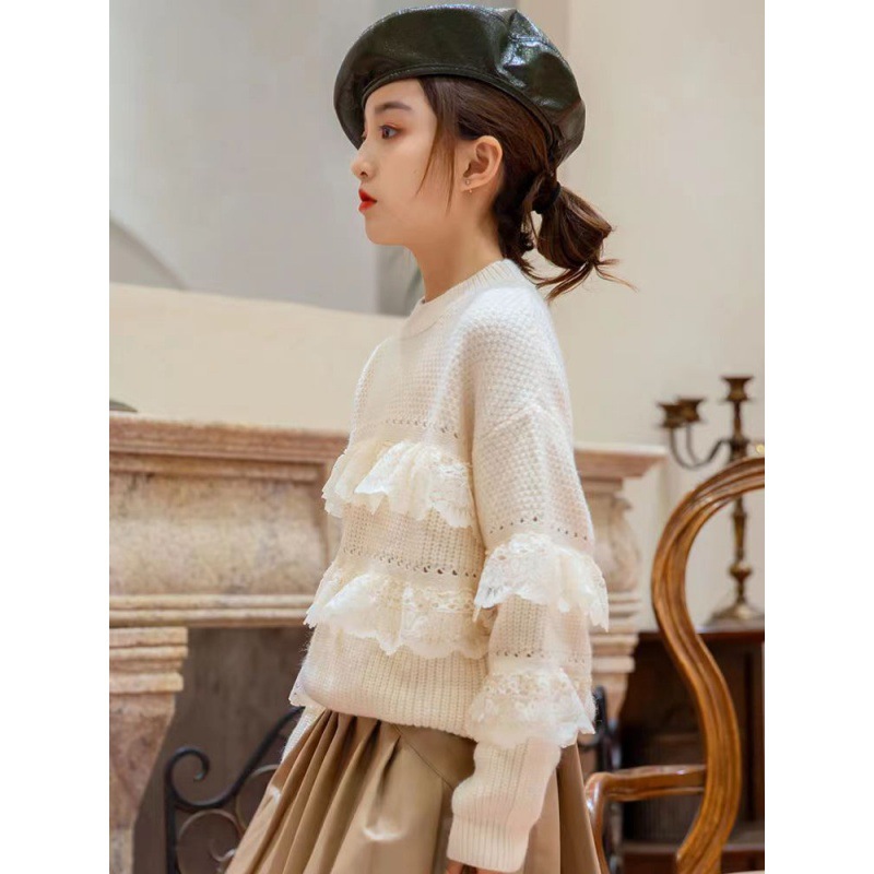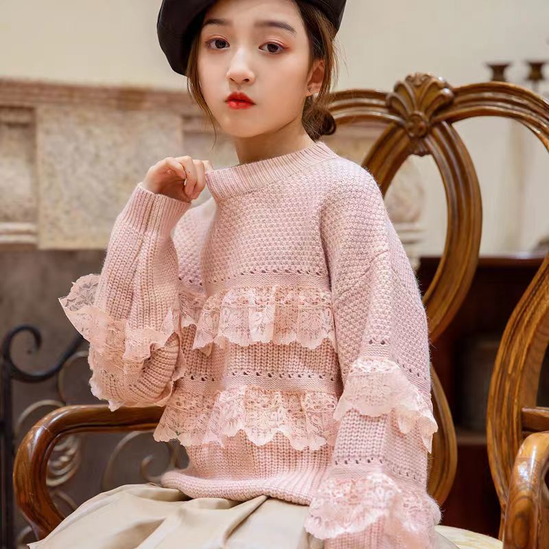 | nameOriginal | Girls' Sweater 2024 New Children's Autumn and Winter Wear Korean Lace Ruffled Loose Knitted Sweater Children's Top |