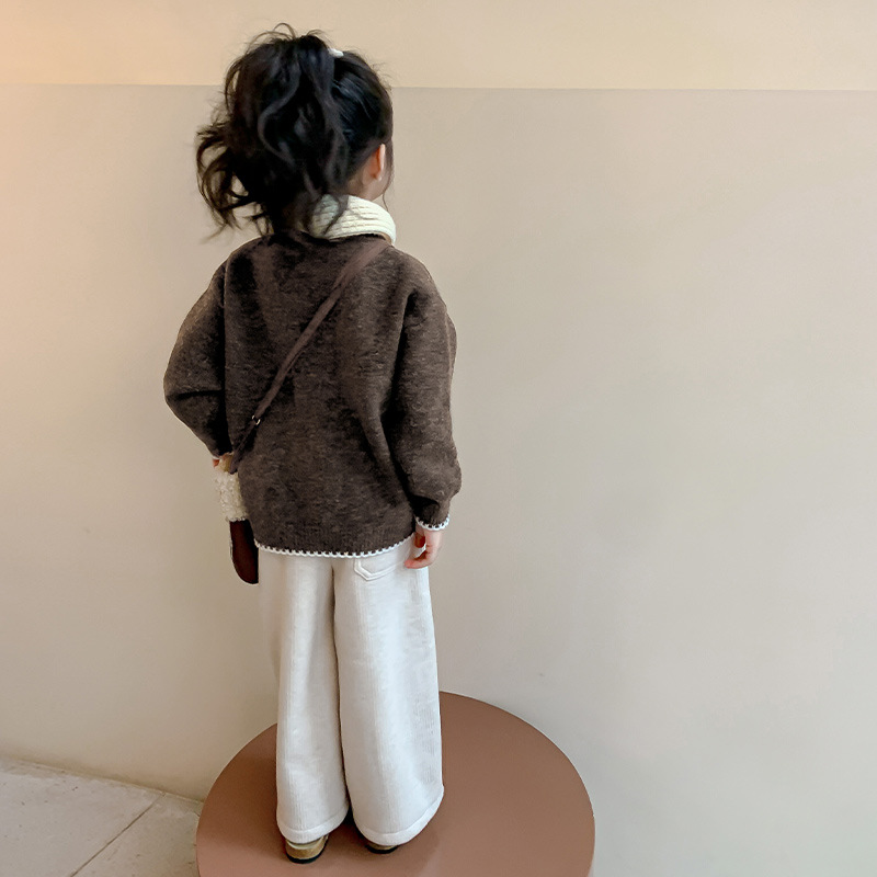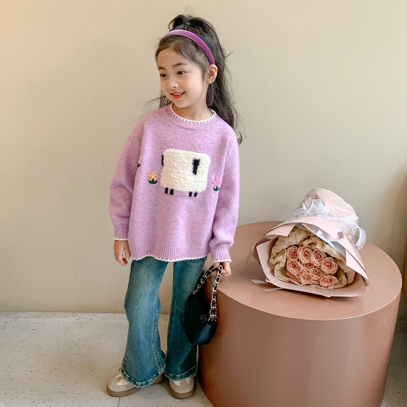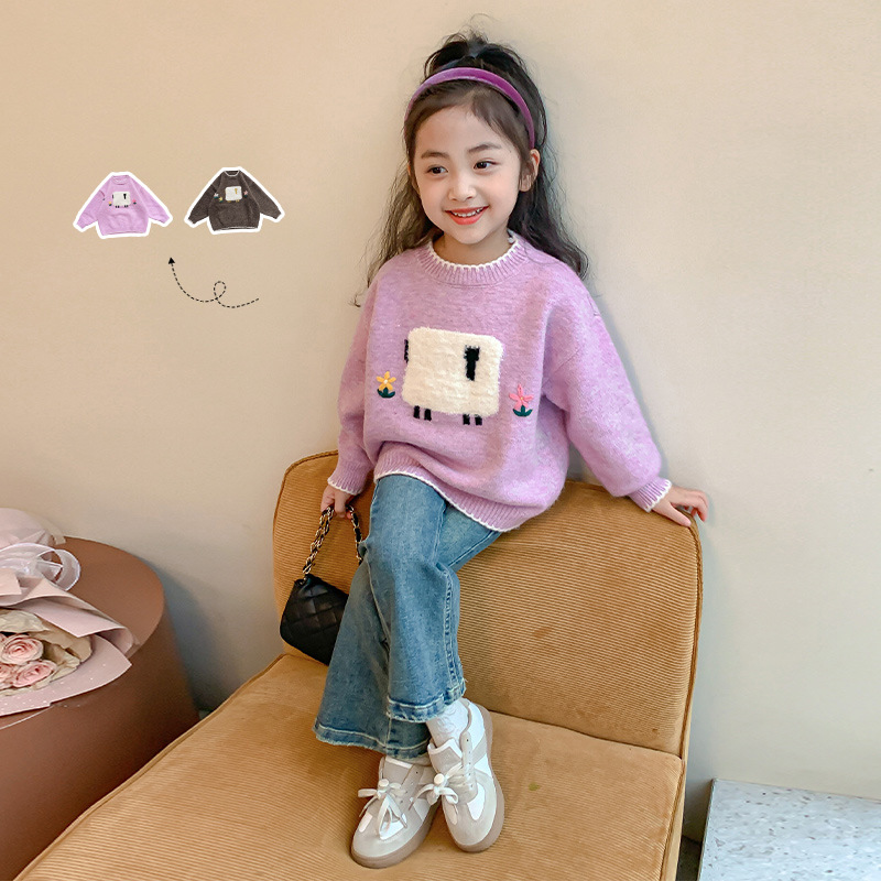 Girls’ sweater autumn clothing 2023 new children’s knitted bottoming shirt Maillard children’s popular pullover top fashion