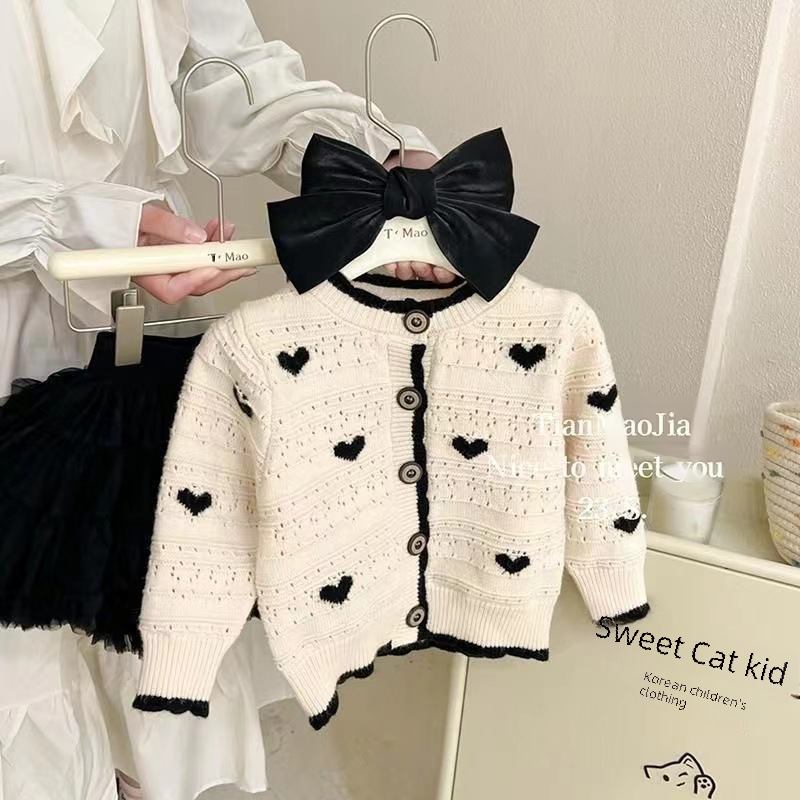 | nameOriginal | Girls' sweater cardigan 2023 spring and autumn trendy kids' fashionable all-match sweet little girl coat top |