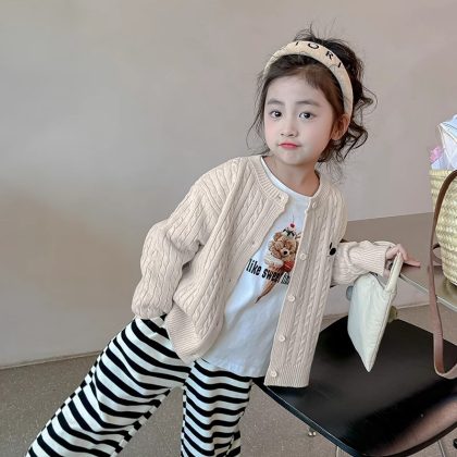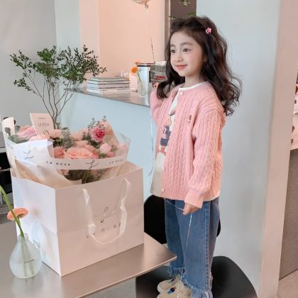 Girls’ sweater cardigan coat spring and autumn 2024 New Korean style children’s clothing girls’ top children’s spring sweater