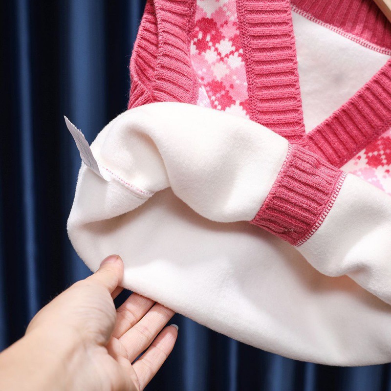 Girls' sweater cardigan fleece-lined Western style children's autumn and winter 2023 new sweater coat baby coat fashion