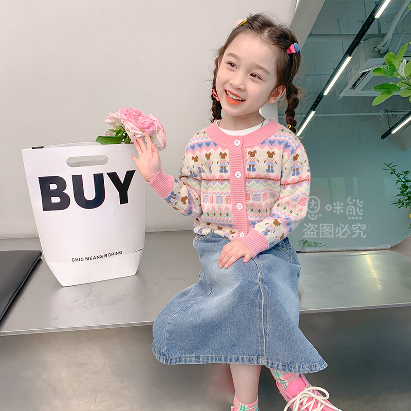 | nameOriginal | Girls' sweater fleece-lined thickened knitted cardigan Spring and Autumn New Western style baby coat children's clothes fashion |