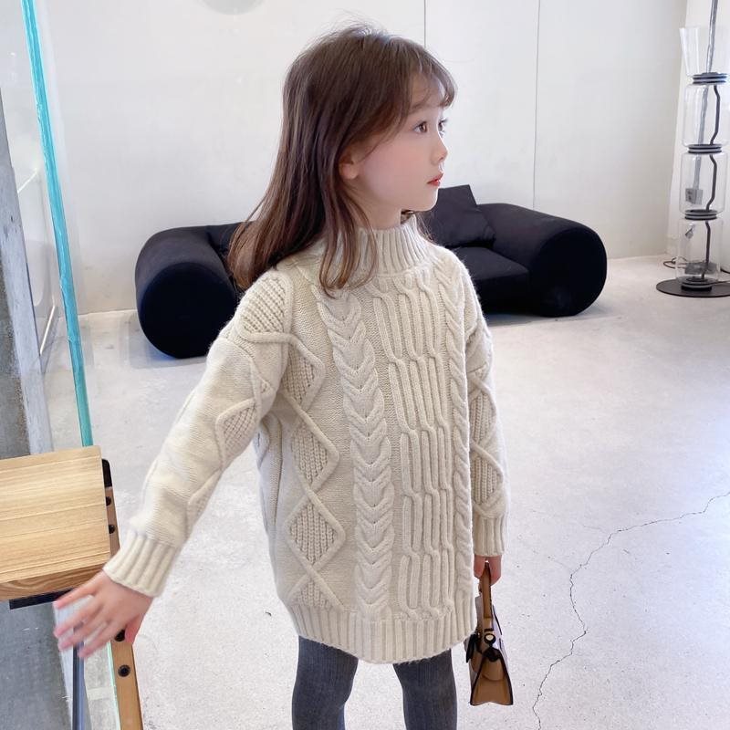 | nameOriginal | Girls' Sweater Long Winter 2023 New Loose Korean Knitted Sweater Children's Mock Collar Top |