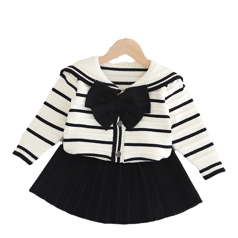 | nameOriginal | Girls' sweater skirt striped shirt Western style navy collar knitted two-piece set autumn and winter New baby girls' Korean style cardigan fashion |