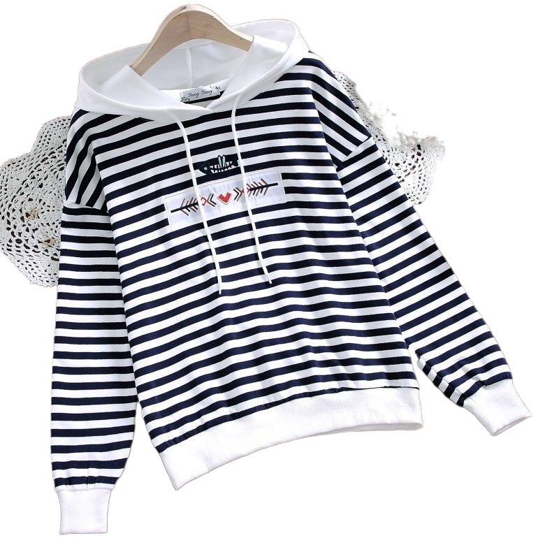 | nameOriginal | Girls' Sweater Spring and Autumn 2024 New Style Children's Western Style Striped Hooded Children's Base Shirt 12 Long Sleeve Top 15 |