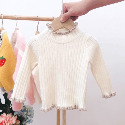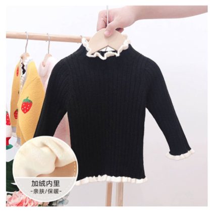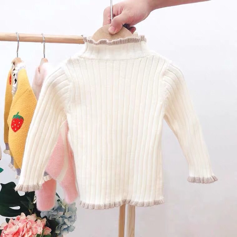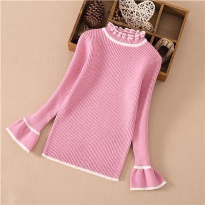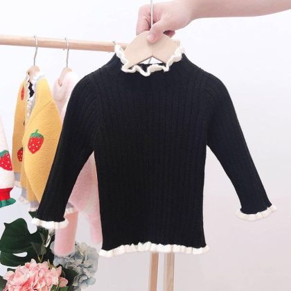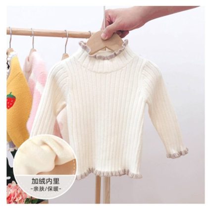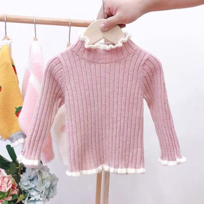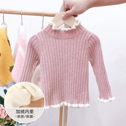 Girls’ Sweater Spring and Autumn New Baby’s Western Style Pullover Knitted Sweater Girls’ fleece-lined Base Sweater Top Sweater