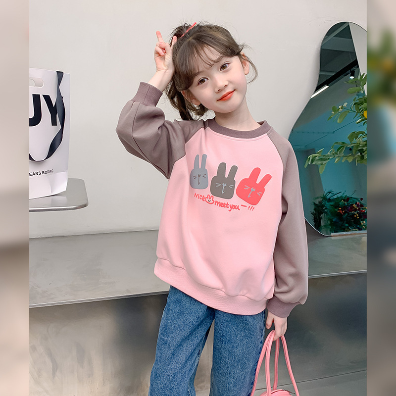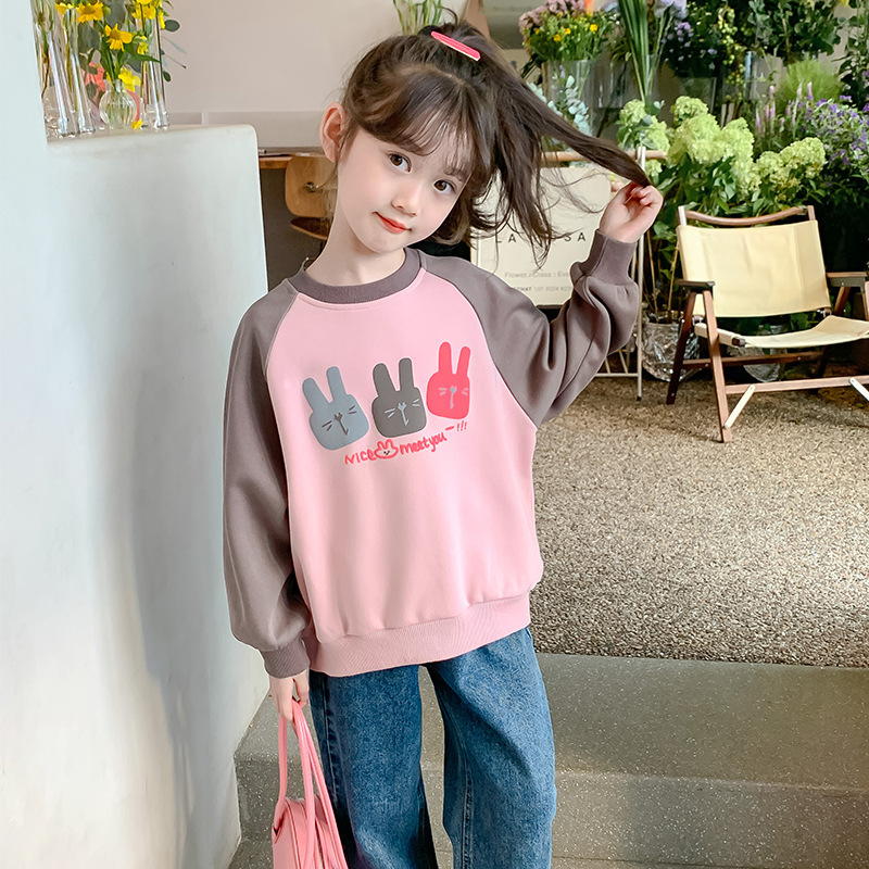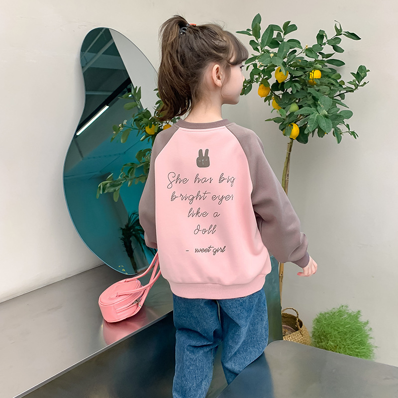 Girls’ sweater spring clothing 2024 New Online Red Western style children’s spring and autumn long sleeve little girl’s Spring children’s clothing top