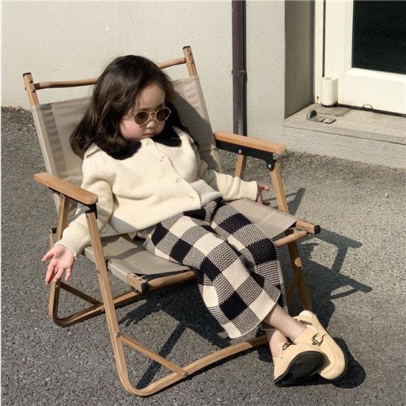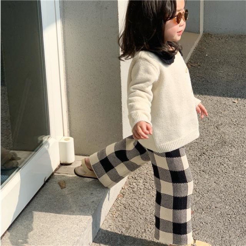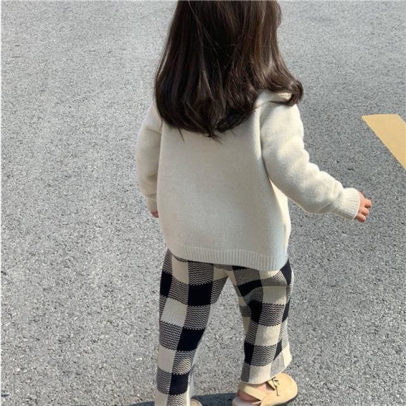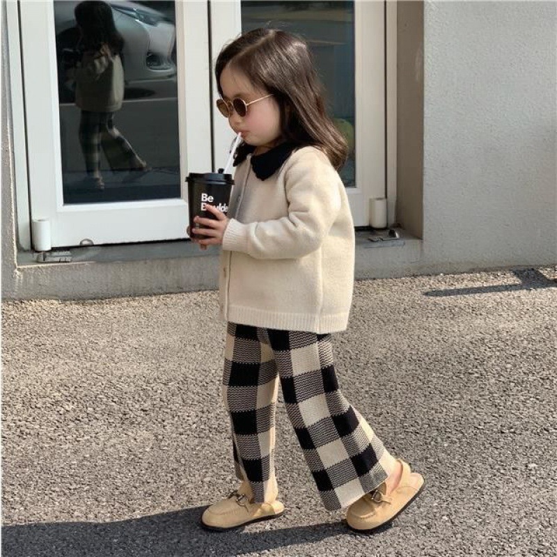 | nameOriginal | Girls' sweater suit 2023 Autumn New Korean style cardigan top Plaid wide leg pants sweater two-piece set |