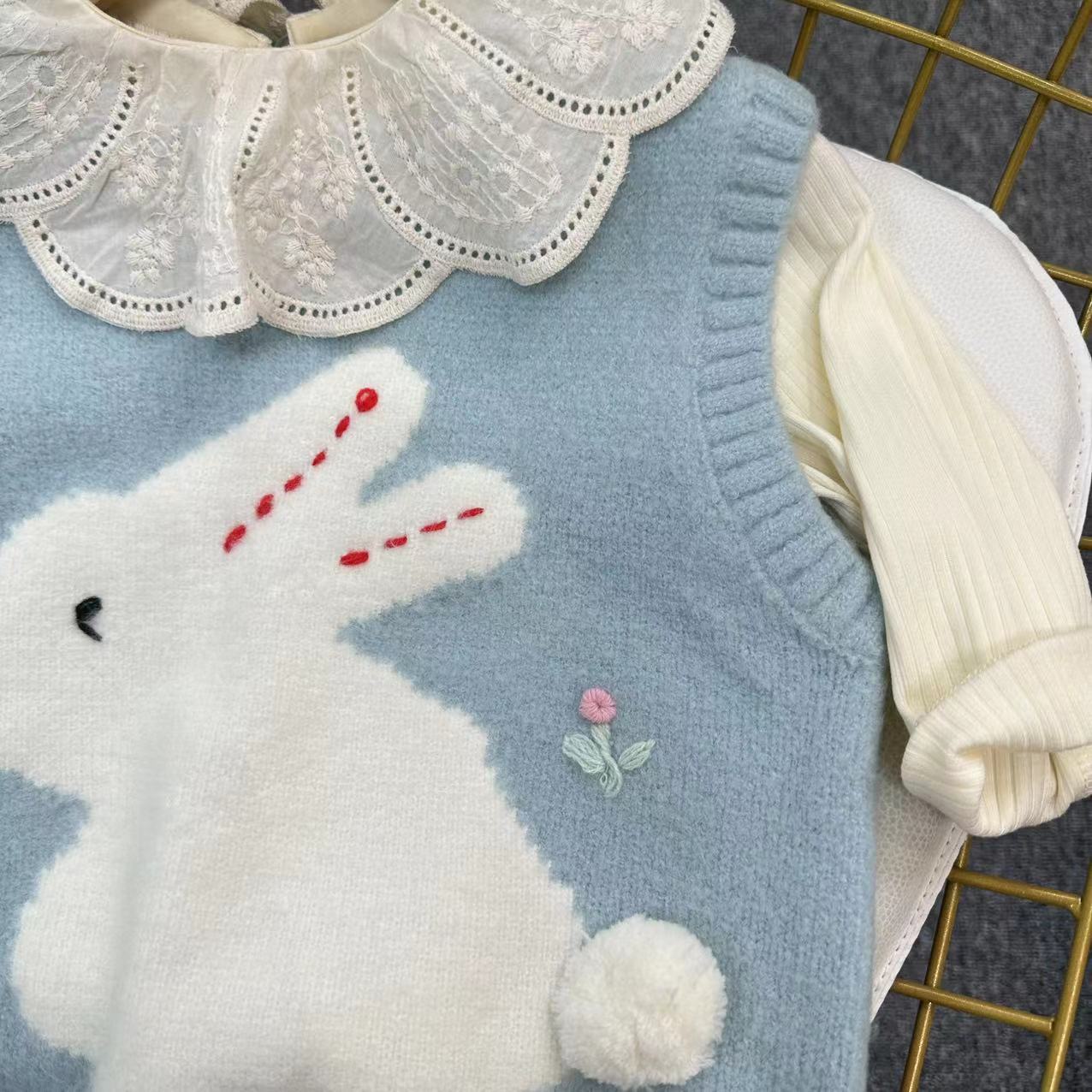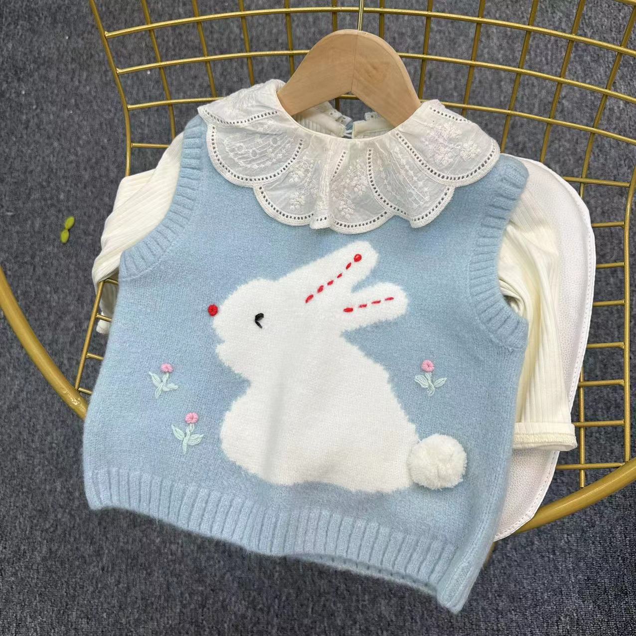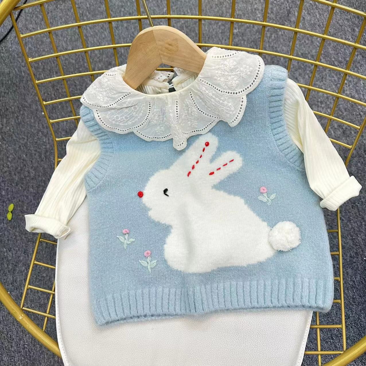 | nameOriginal | Girls' sweater vest cute blue rabbit outerwear cartoon popular online baby girls' outerwear sweater vest |