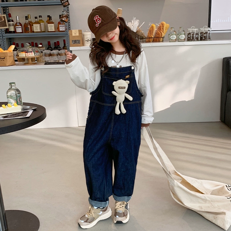 | nameOriginal | Girls sweatshirt denim overalls suit children's pants spring fashion casual casual middle and large children loose suspender trousers |
