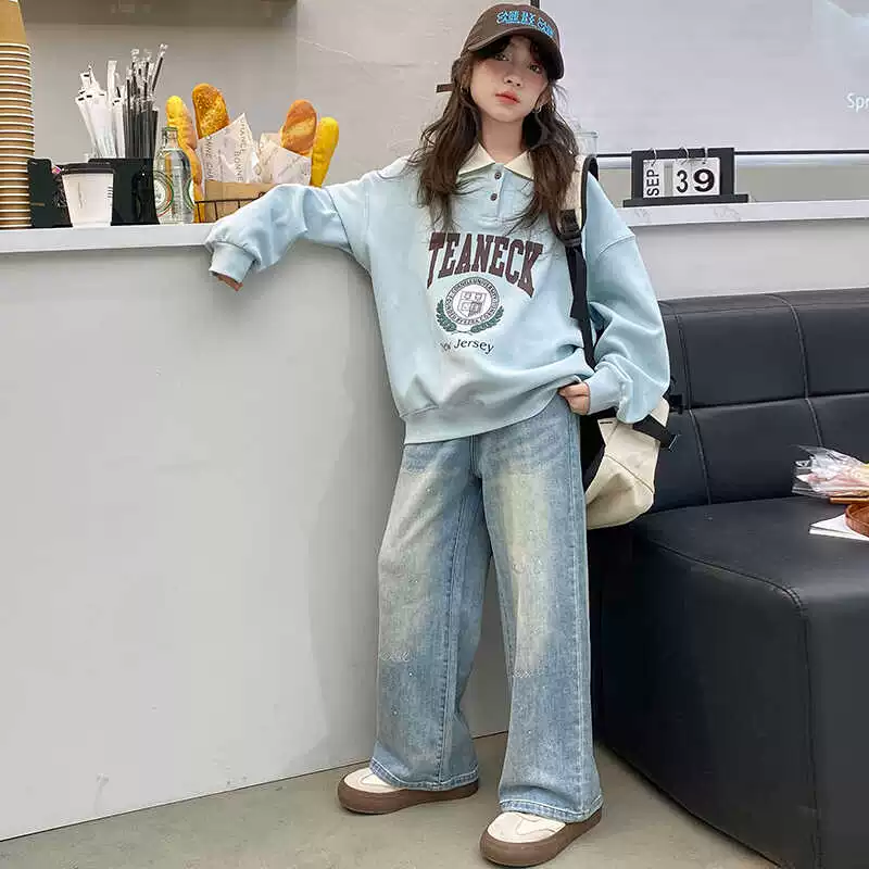 Girls sweatshirt spring and autumn 2024 new children's spring style long-sleeved polo shirts big children's spring lapel tops