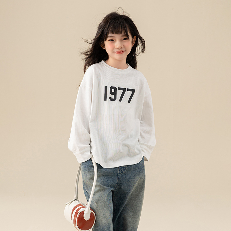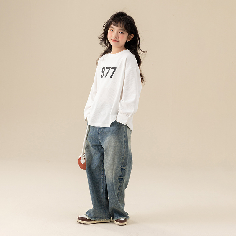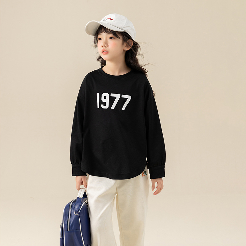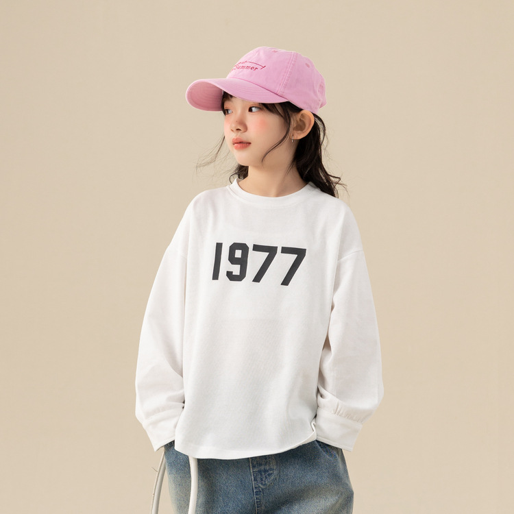 Girls’ Sweatshirt Spring and Autumn 2024 New Style Big Children’s Internet Celebrity Fashionable Street-style Spring Clothes Children’s Top