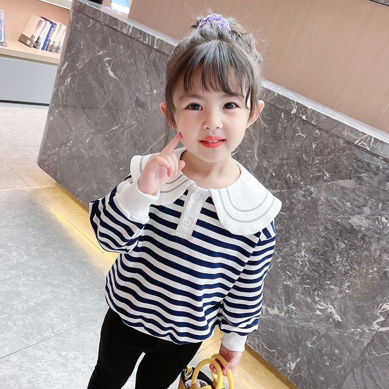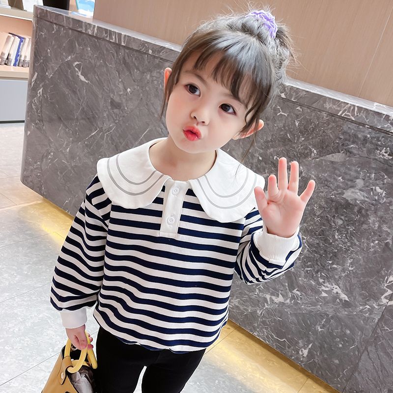 Girls’ Sweatshirt Spring and Autumn New Children’s Korean-style Sports Lapel Black and White Striped Baby Girl fleece-lined Trendy