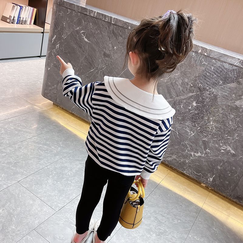 | nameOriginal | Girls' Sweatshirt Spring and Autumn New Children's Korean-style Sports Lapel Black and White Striped Baby Girl fleece-lined Trendy |