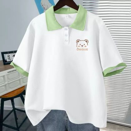 | nameOriginal | Girls' T-shirt 2024 Summer new medium and large Children Korean style fashion loose college style bear Polo collar top fashion |
