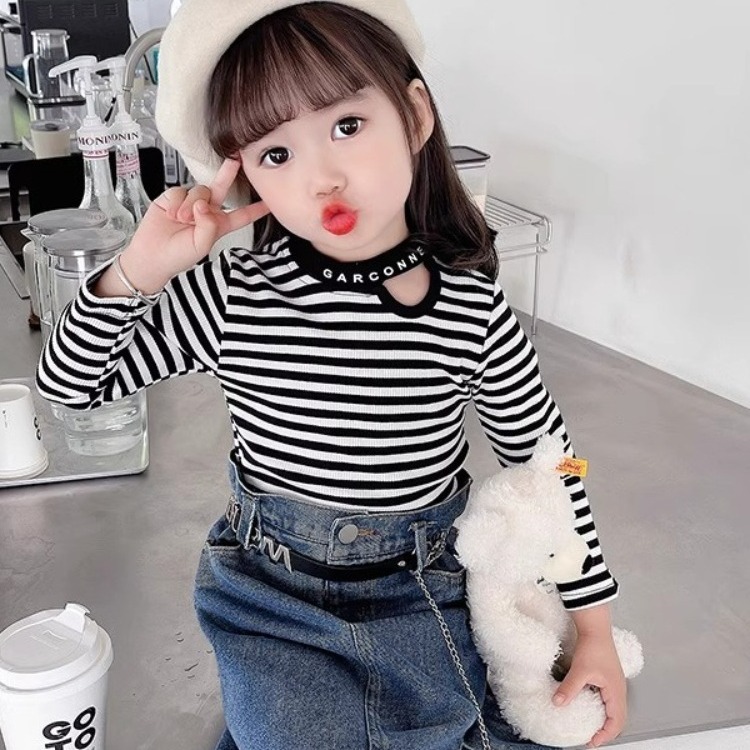| nameOriginal | Girls' T-shirt Spring and Autumn 2024 New Children's Cotton Long Sleeve Striped Base Shirt for Baby Girls Spring Spring T-shirt Round Neck |