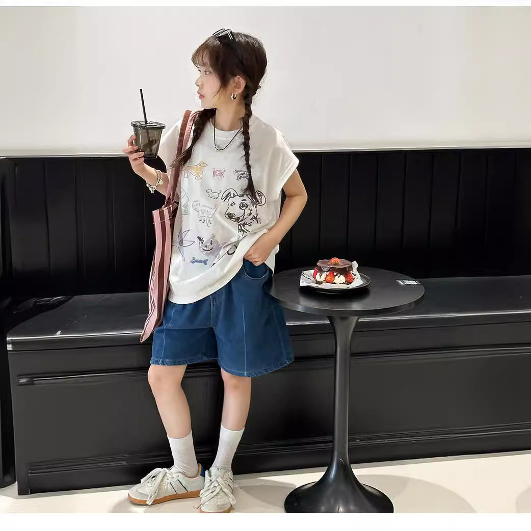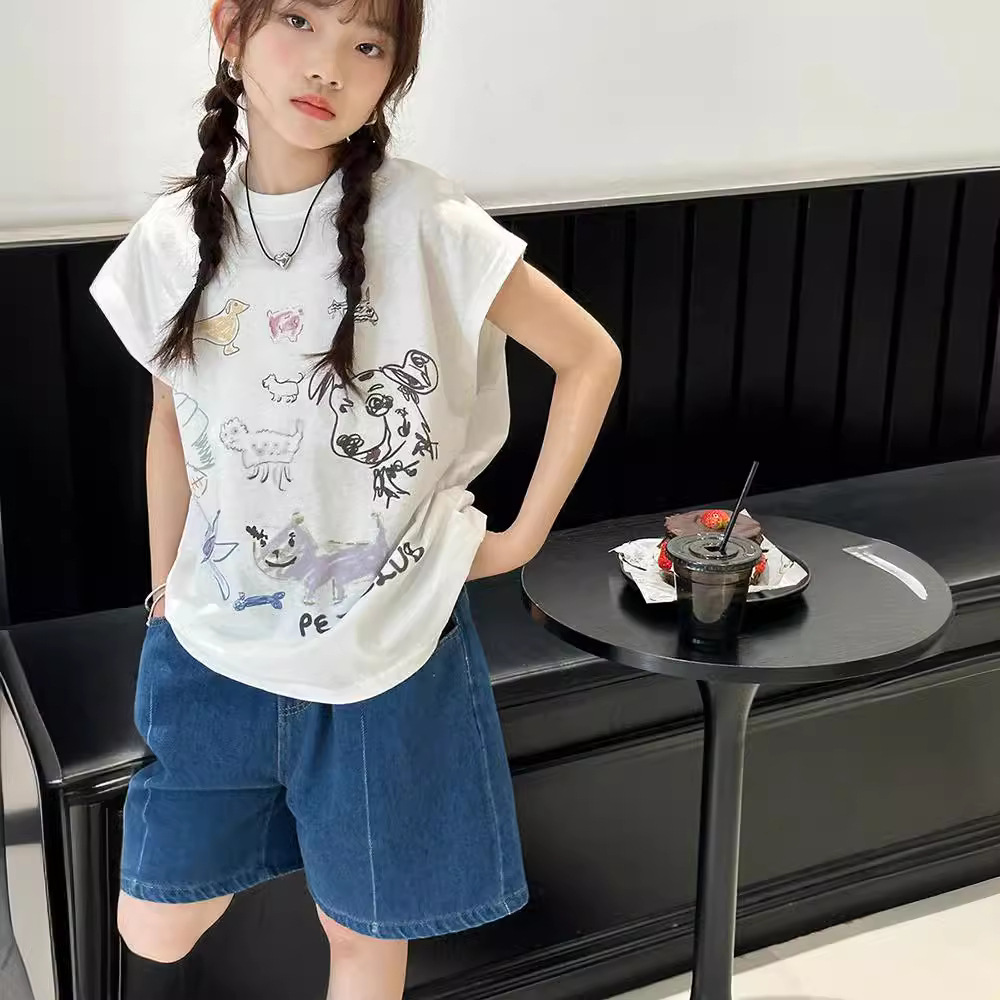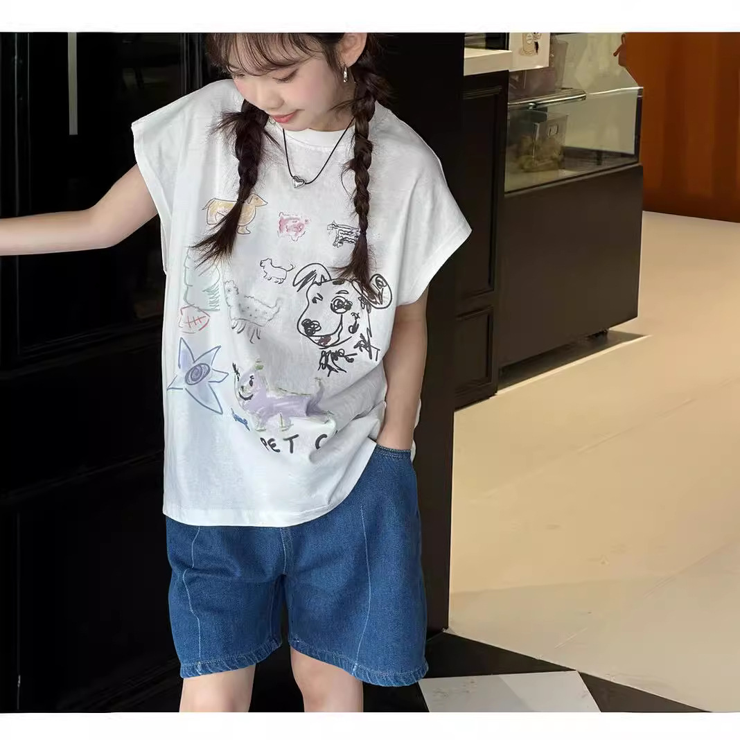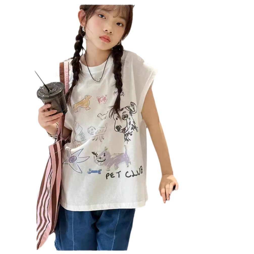 | nameOriginal | Girls' T-shirt Summer 2024 New Stylish Painted Cartoon Sleeveless Vest Trendy All-match Top for Middle and Big Kids |