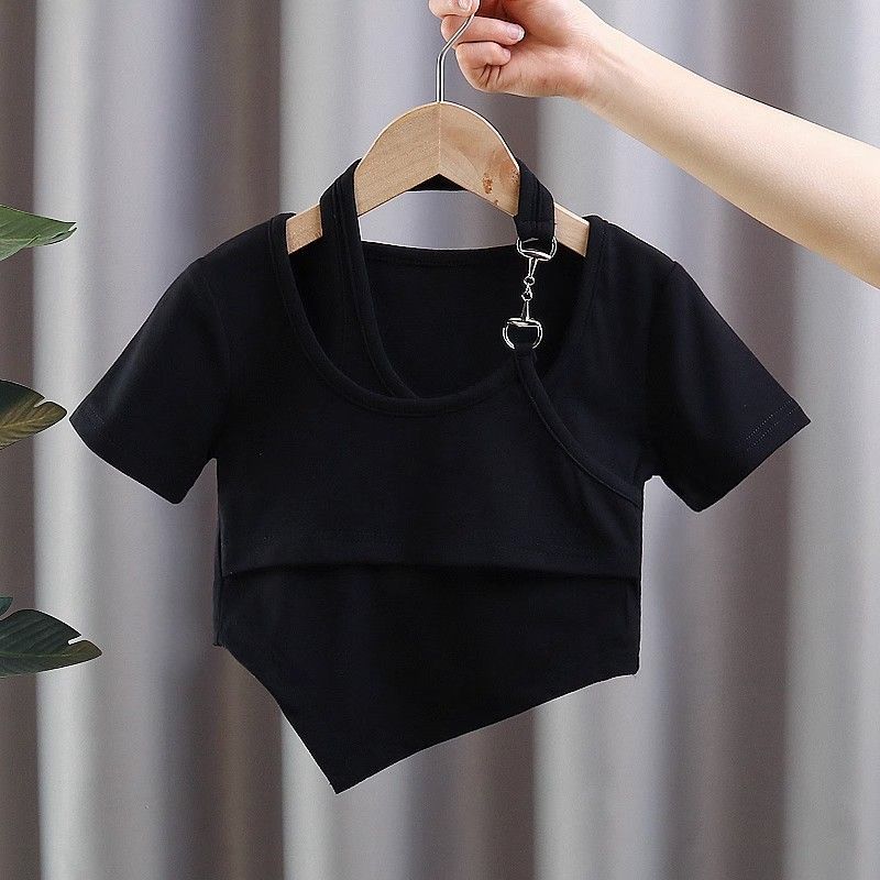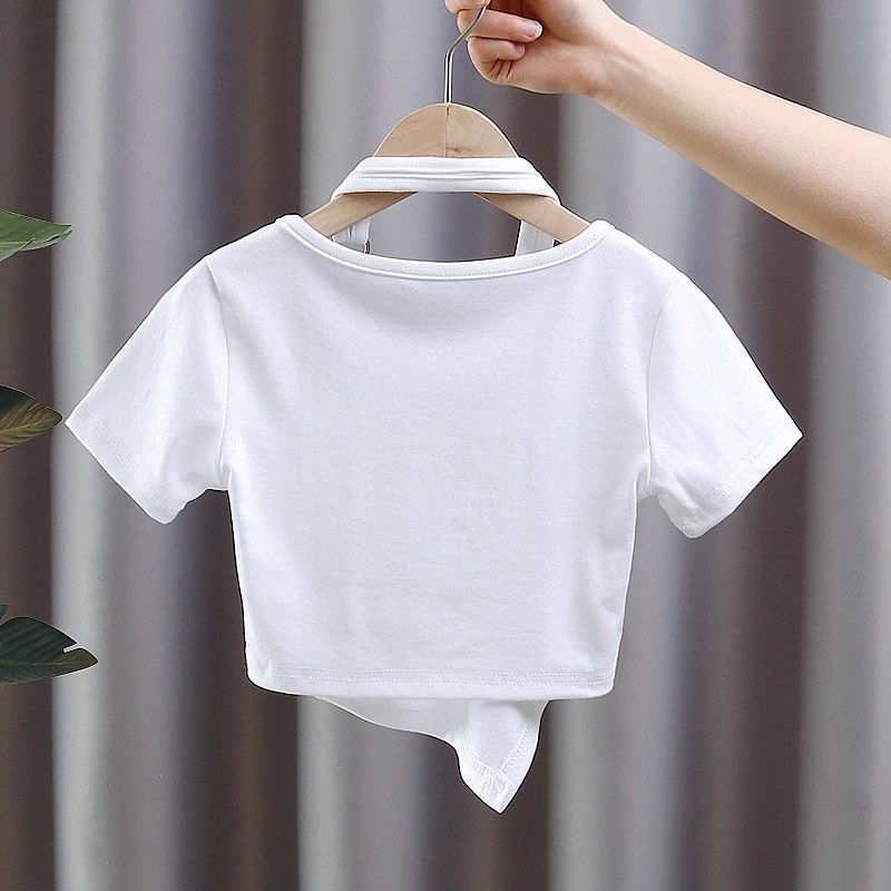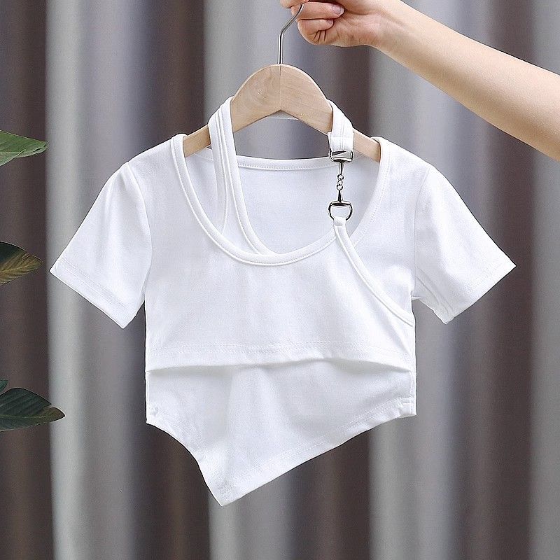 Girls’ T-shirt Summer New Korean Style Children’s Trendy Cool Slim-fit Short Irregular Fashionable Short-sleeved T-shirt for Middle and Big Children