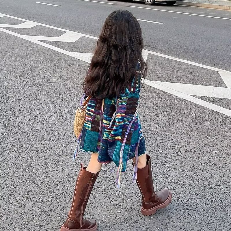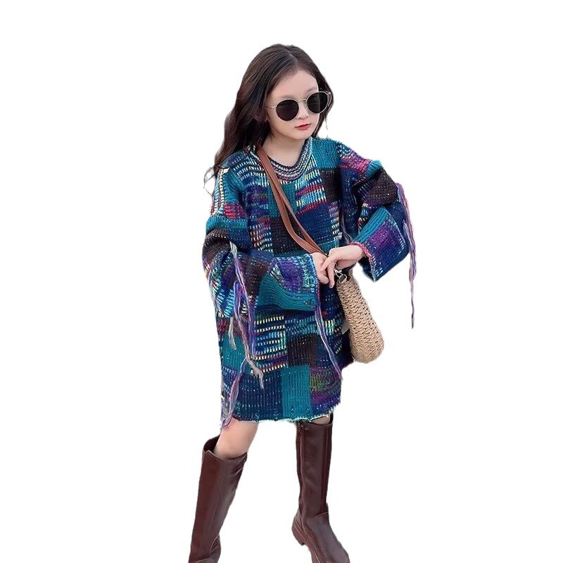| nameOriginal | Girls' tassel sweater fashionable fashionable 2023 Autumn New loose casual top mid-length little girl autumn clothes |