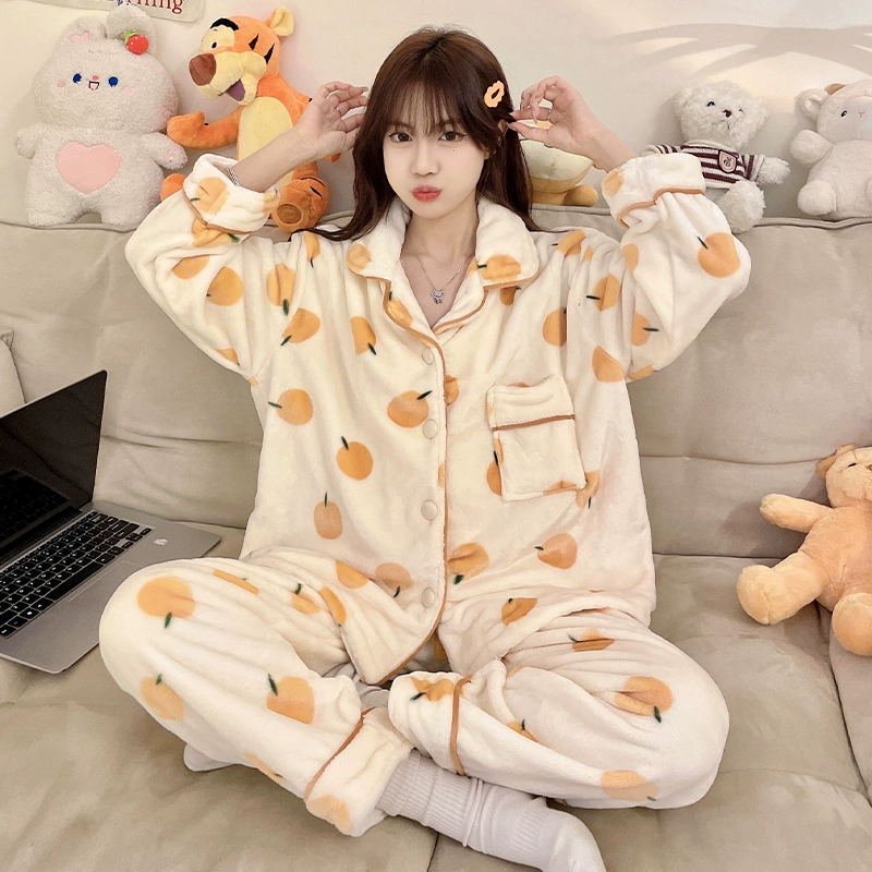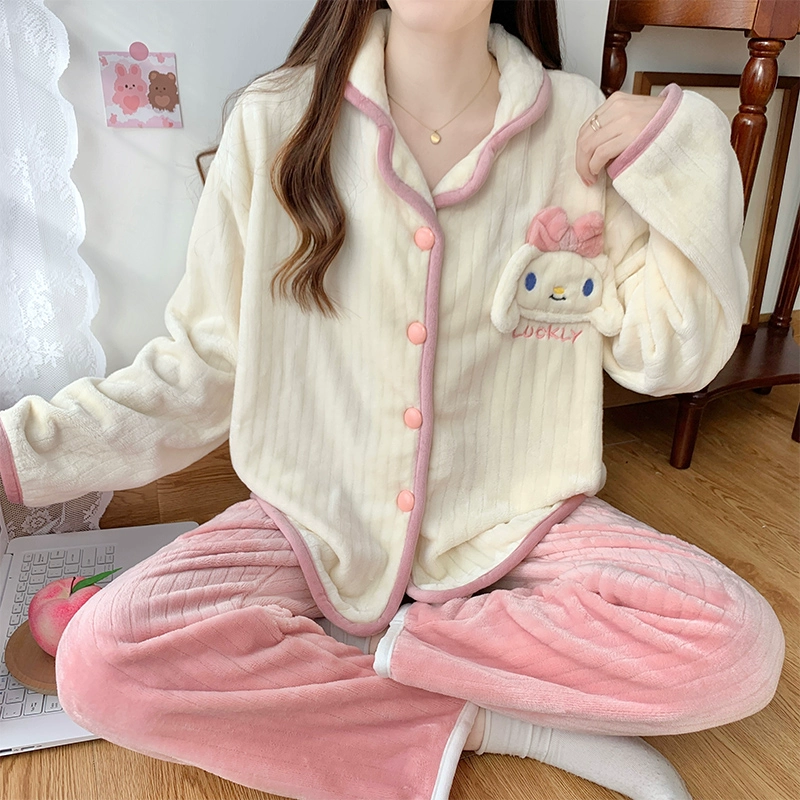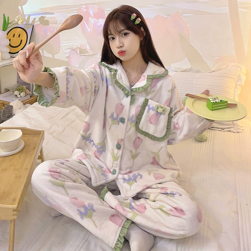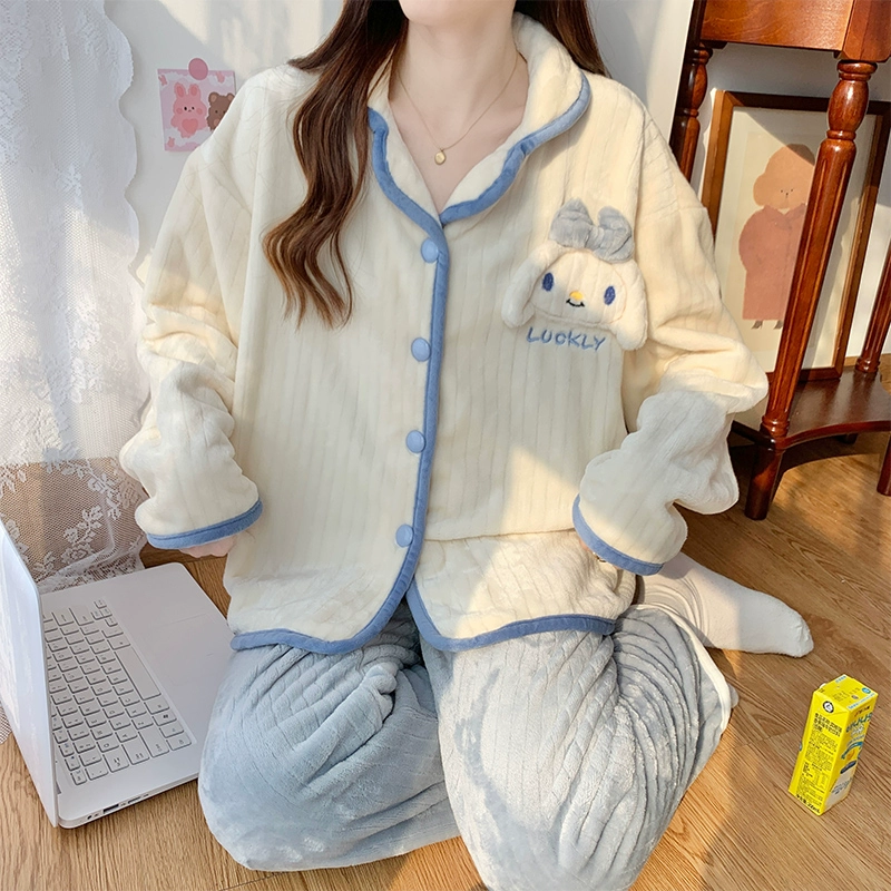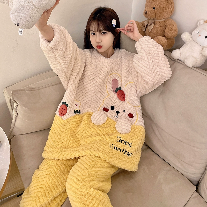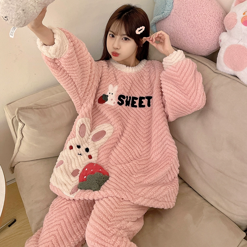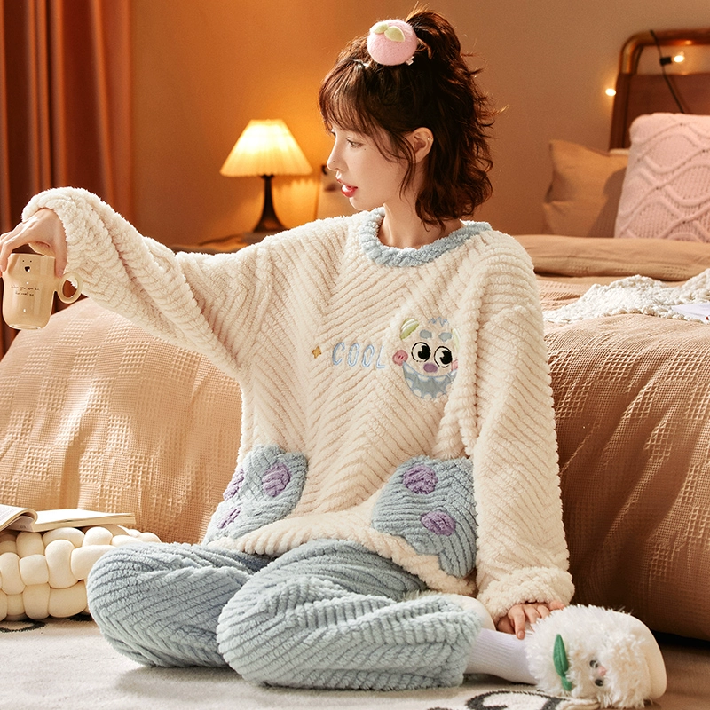 | nameOriginal | Girls' thickened and cute flannel pajamas for spring, autumn and winter |
