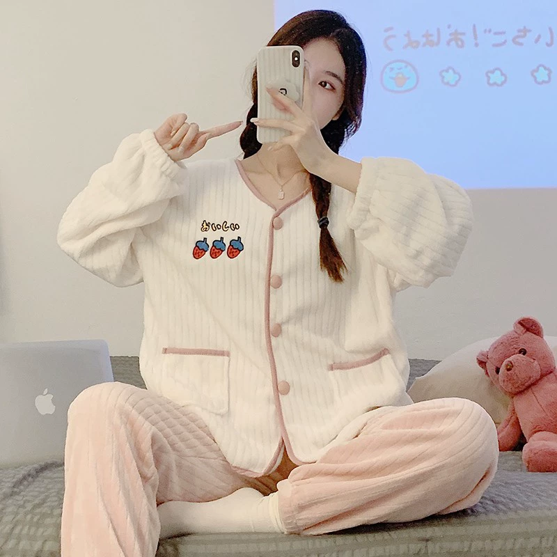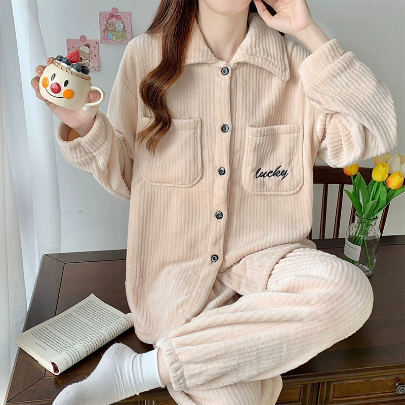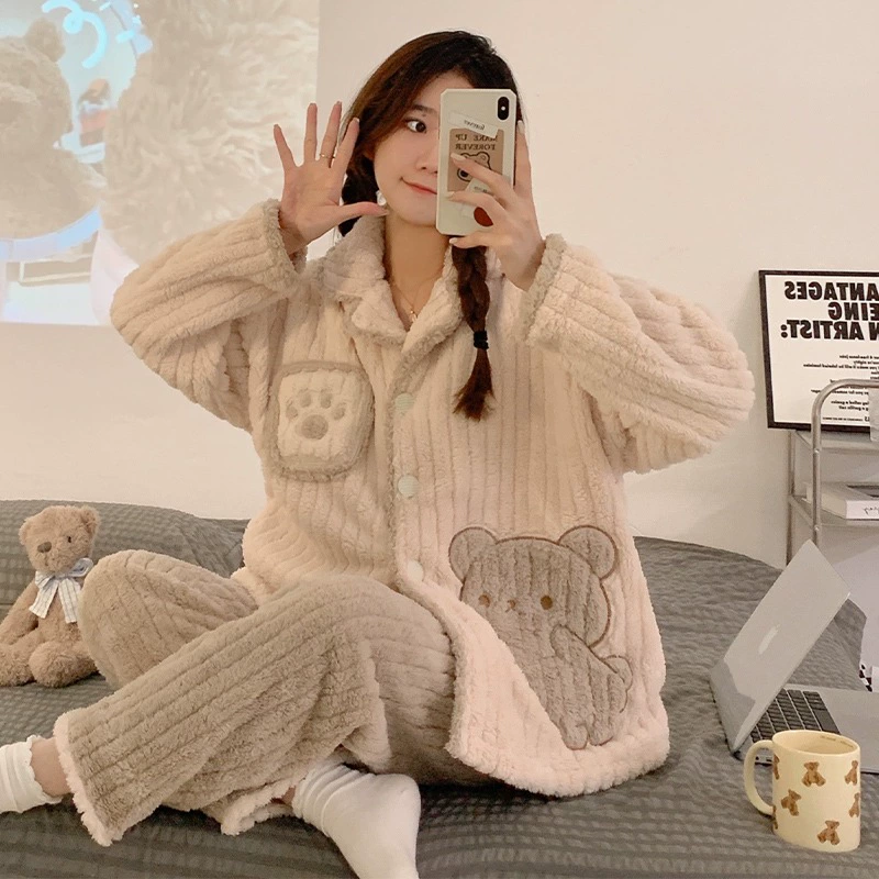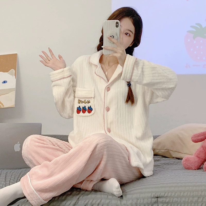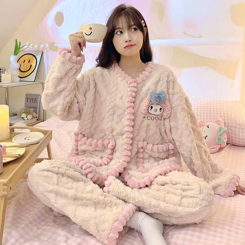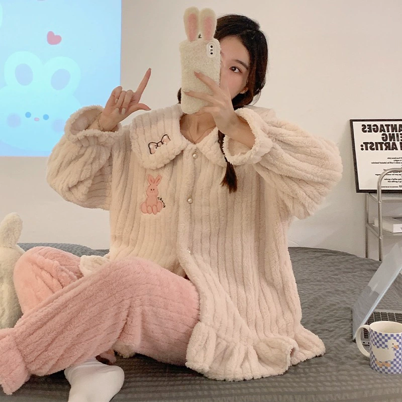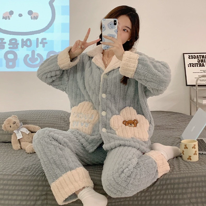 | nameOriginal | Girls' thickened and cute flannel pajamas for spring, autumn and winter |