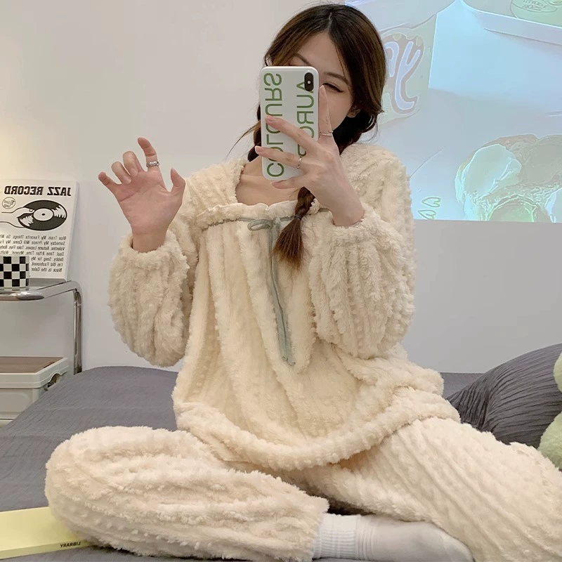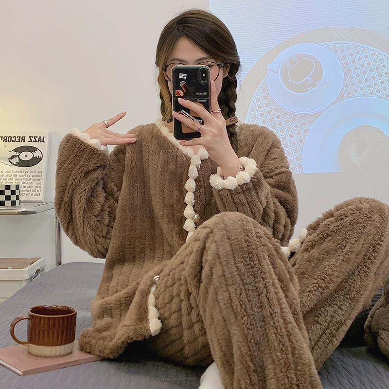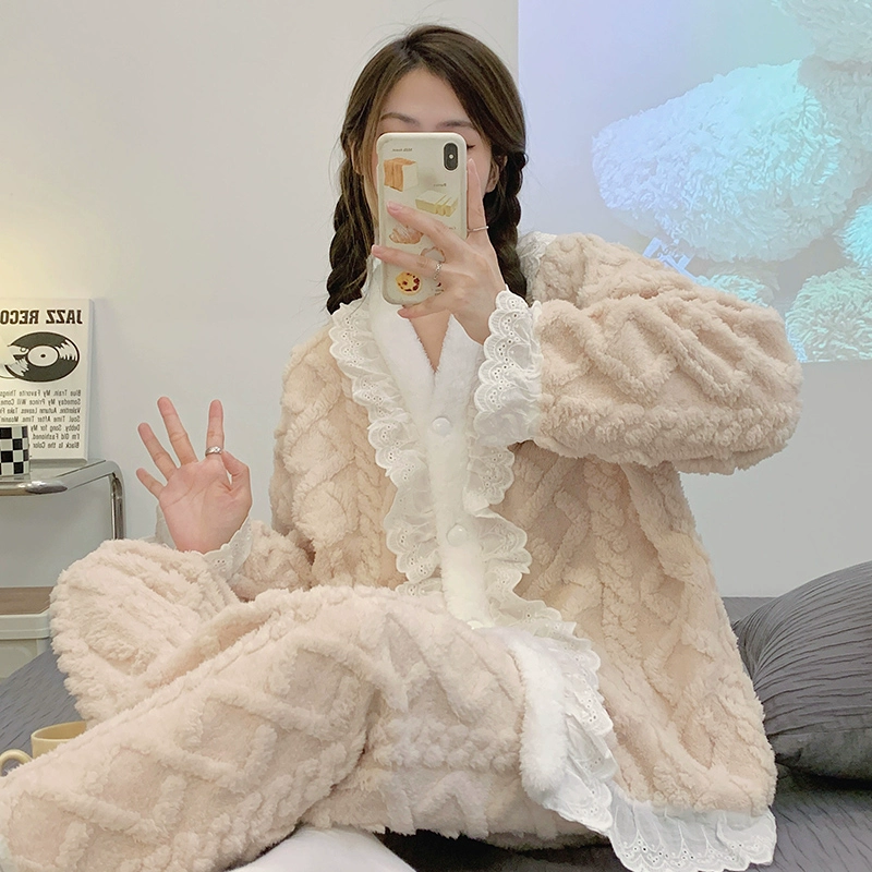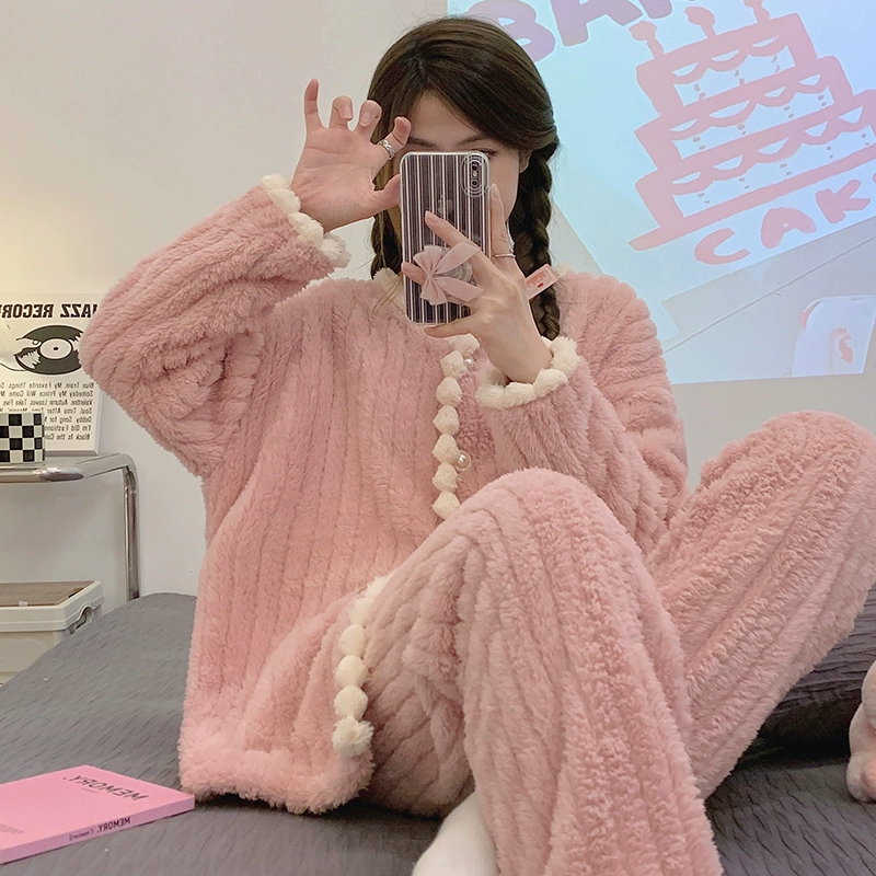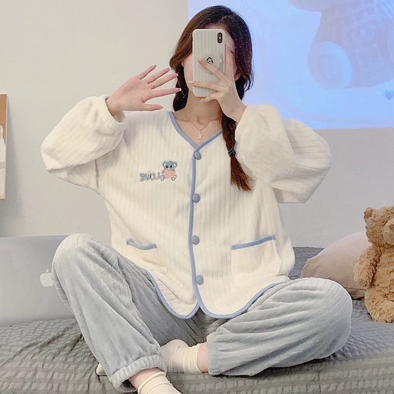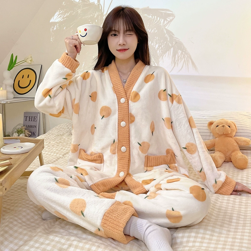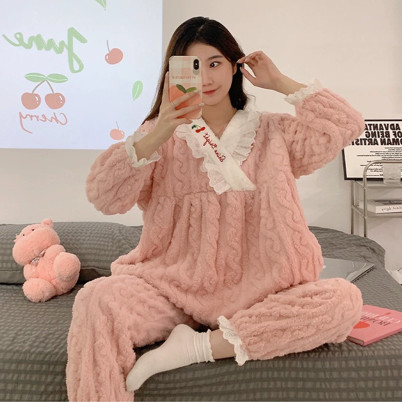 | nameOriginal | Girls' thickened and cute flannel pajamas for spring, autumn and winter |