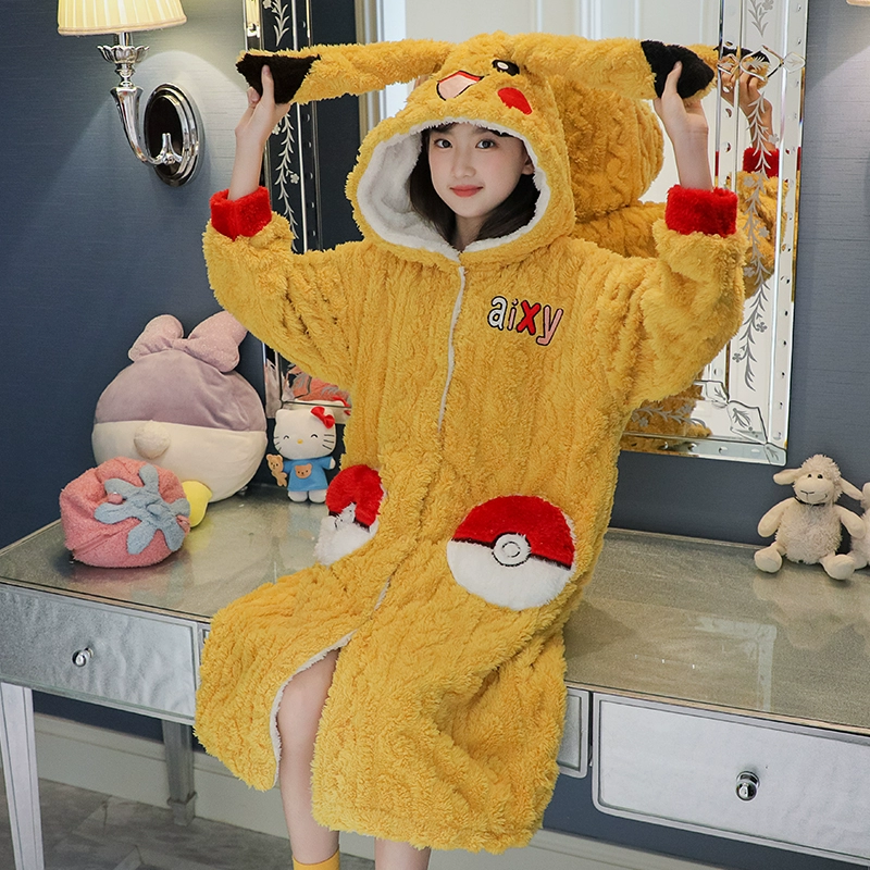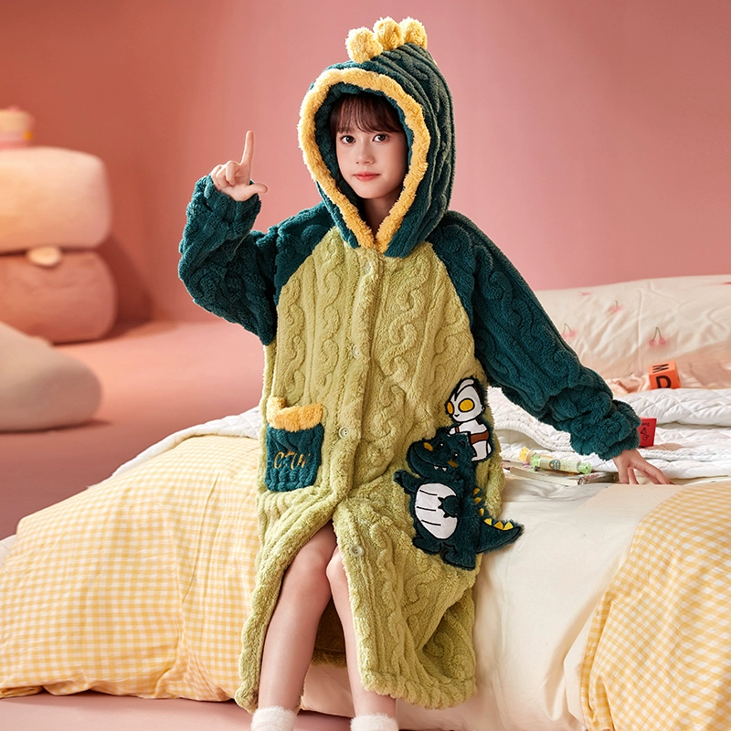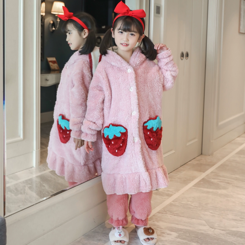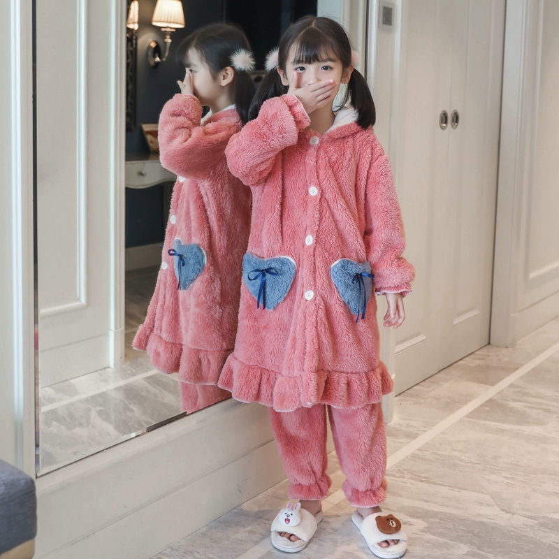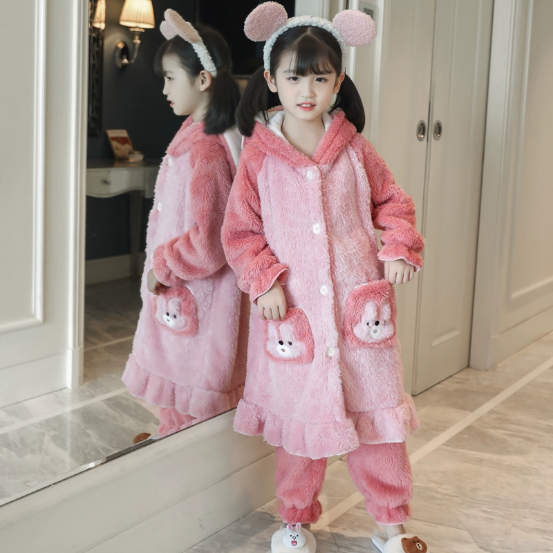 | nameOriginal | Girls' thickened warm long pajamas for medium and large children |