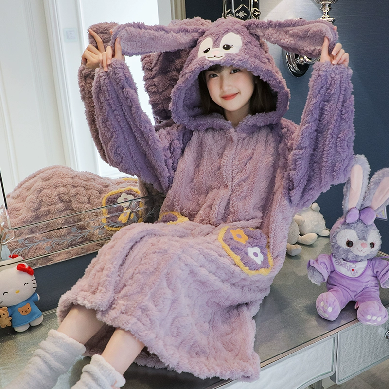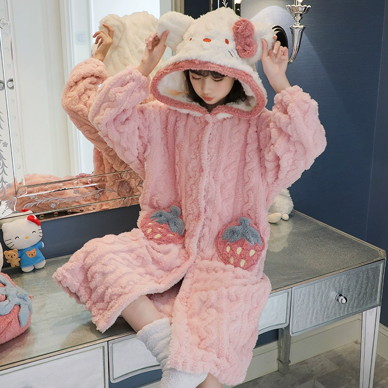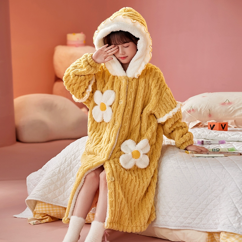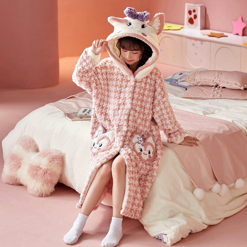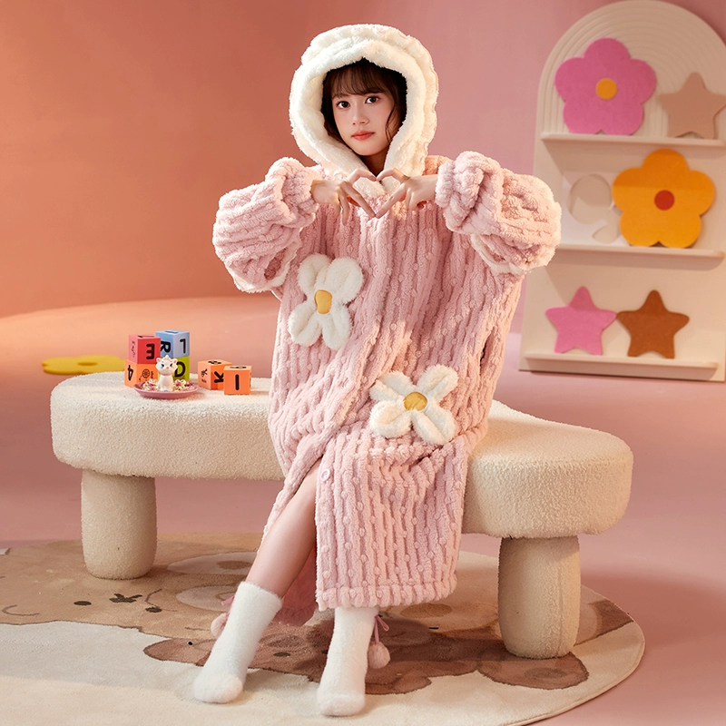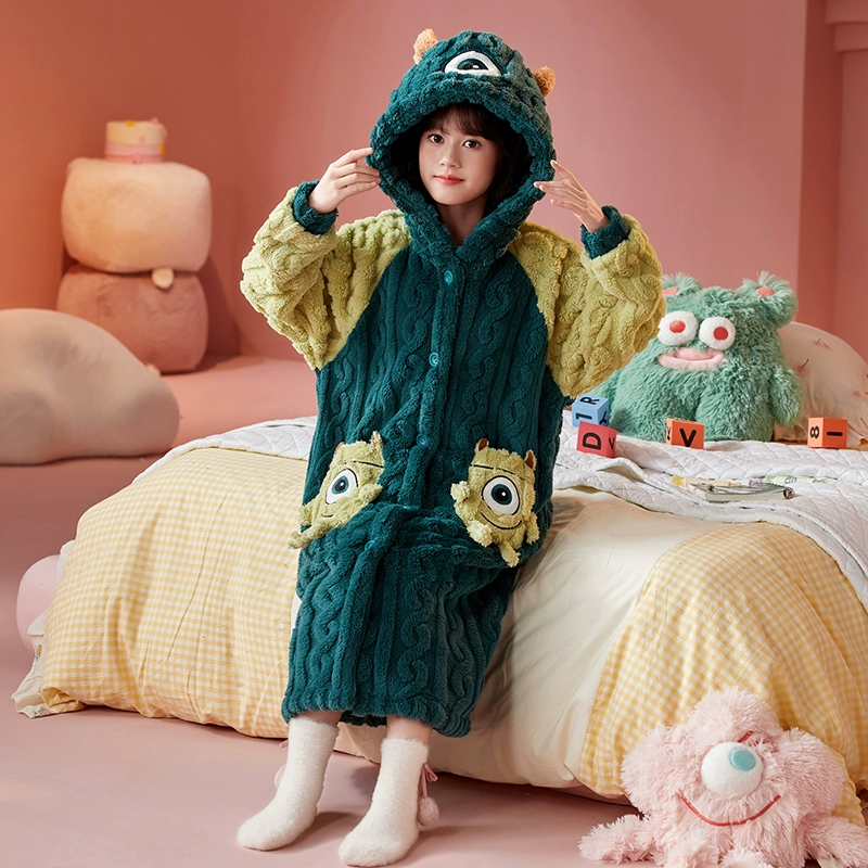 | nameOriginal | Girls' thickened warm long pajamas for medium and large children |
