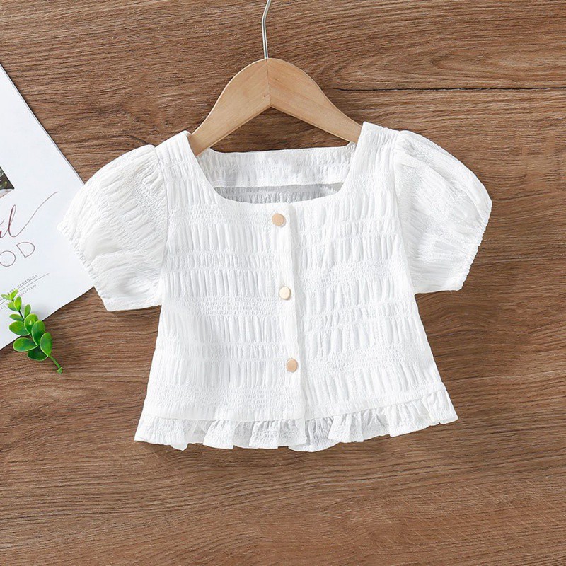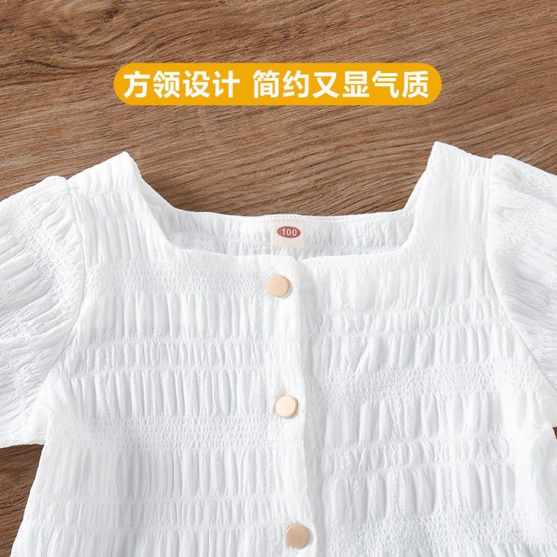 | nameOriginal | Girls' Top Summer 2024 Summer New Square Collar Mid-Big Children's Top Baby Girl's Korean-style Short-sleeved Outer-wear Shirt |