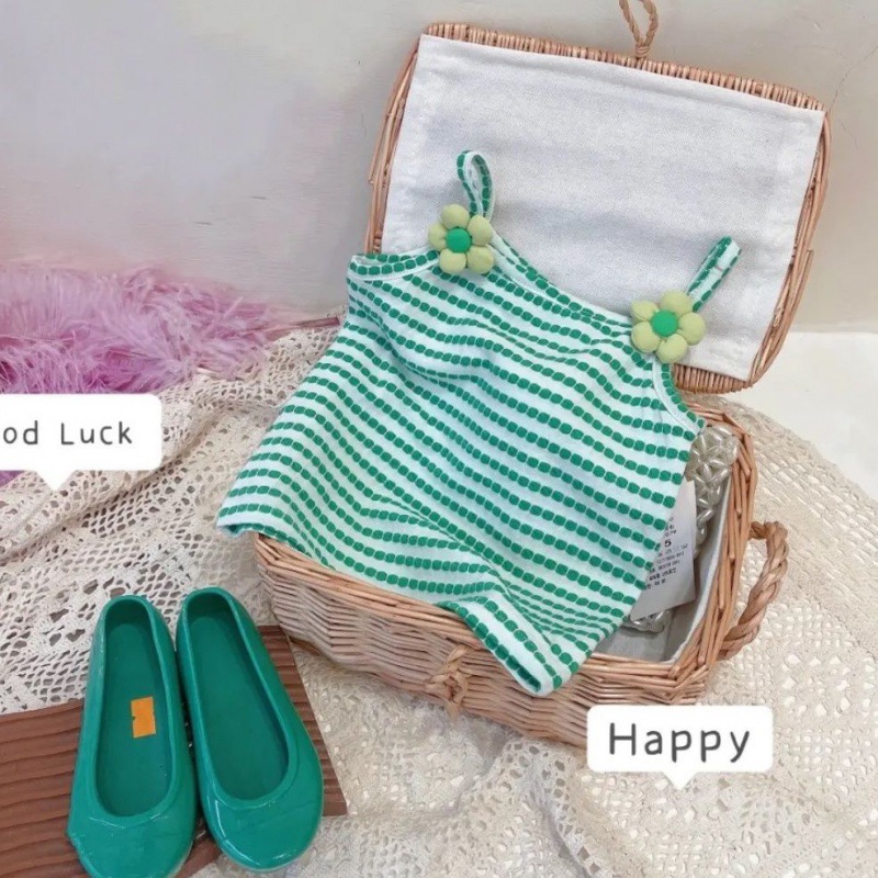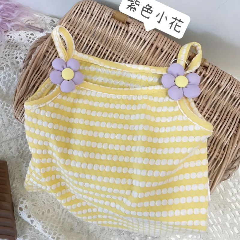 Girls’ Top Summer Thin Strap Short-sleeved 2024 Western Style Simple Top for Baby Girls and Kids Cute All-match Vest
