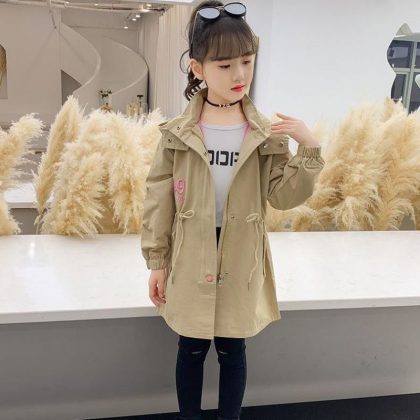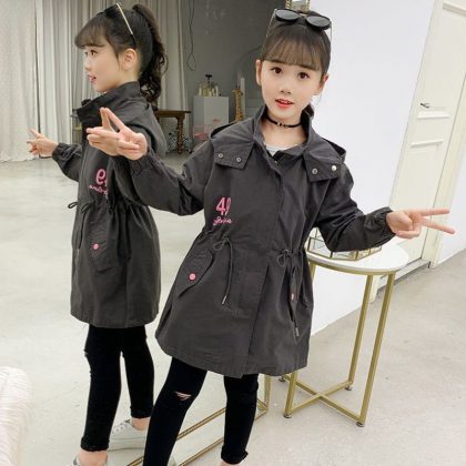 nameOriginal | Girls' Treng Coat 2024 New Korean Style Western Style Spring and Autumn Style Loose Mid-length Coat for Middle School Students Winter Style Trendy |