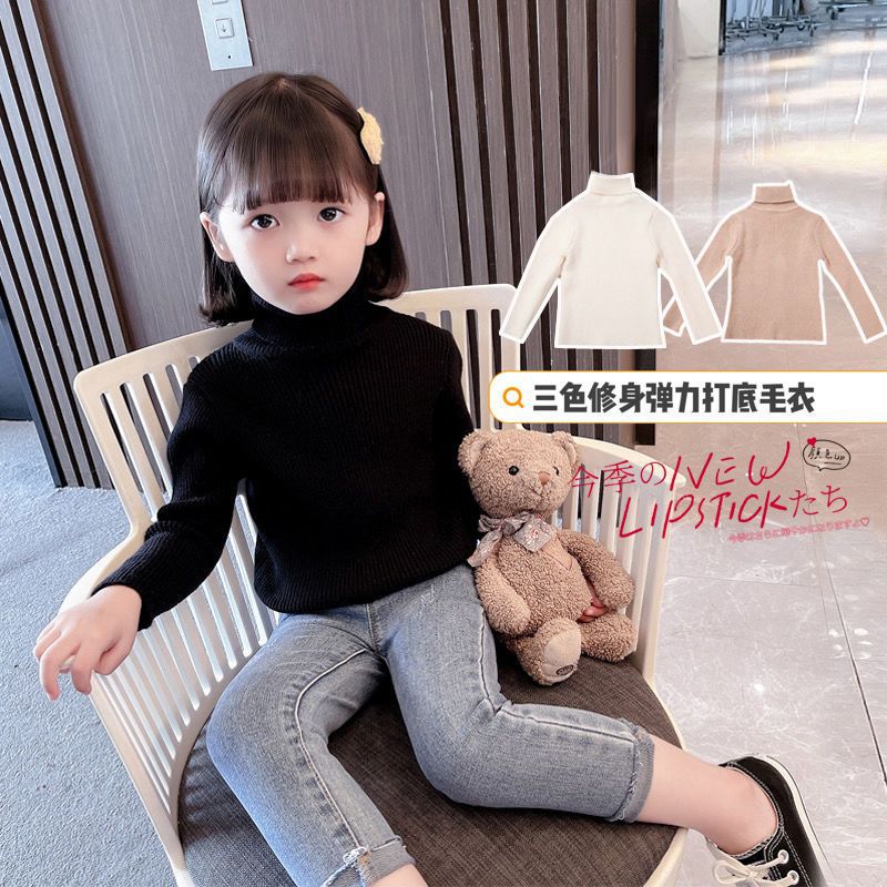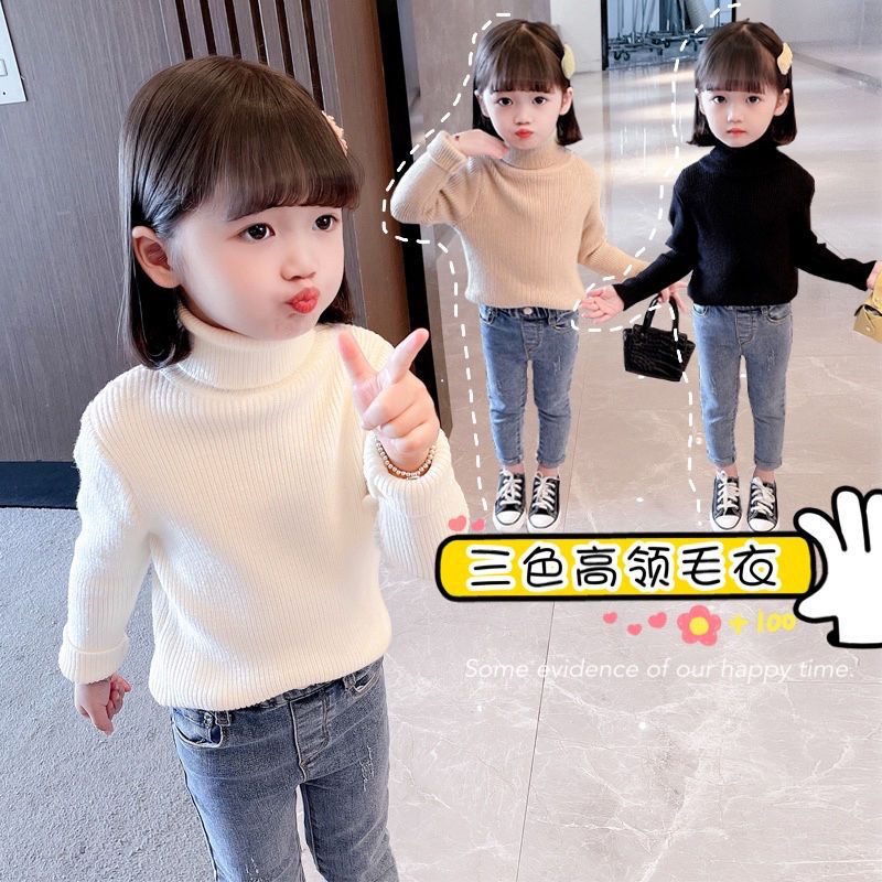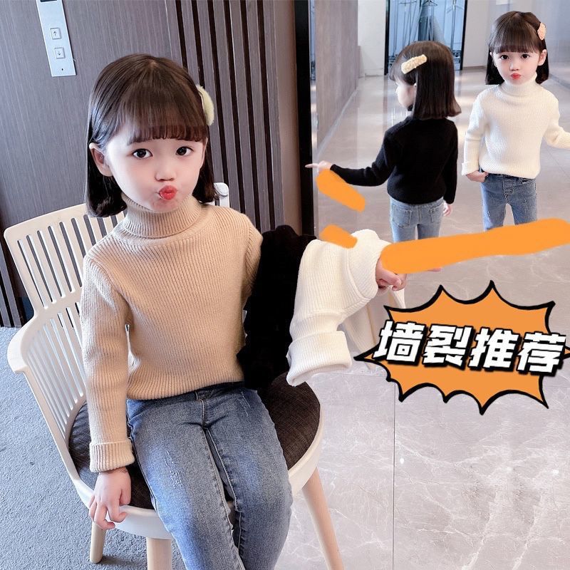 Girls' Turtleneck Sweater All-match Autumn and Winter Children's Western-style Solid Color Base Shirt Top Winter Baby Girls' Knitted Sweater