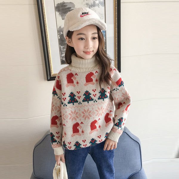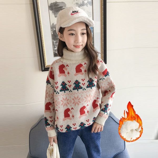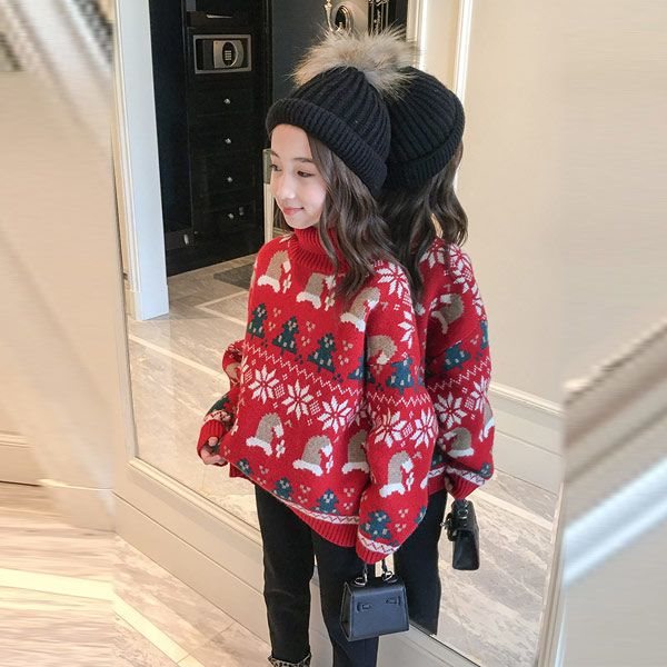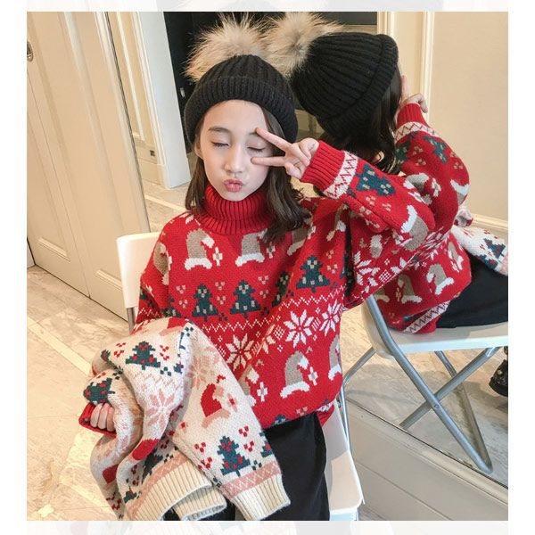 | nameOriginal | Girls' turtleneck sweater autumn and winter 2022 new Korean version of fleece-lined red thick Christmas New Year children's sweater tide |