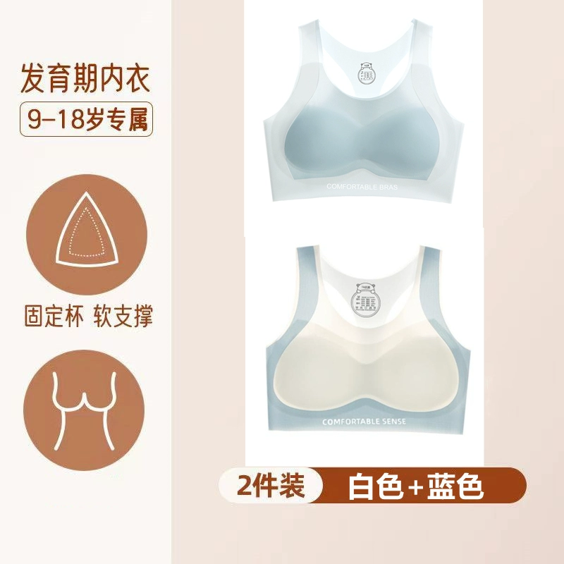 | nameOriginal | Girls' underwear, junior high school students' adolescent development period, thin breathable bra, ice silk fixed cup sports vest |
