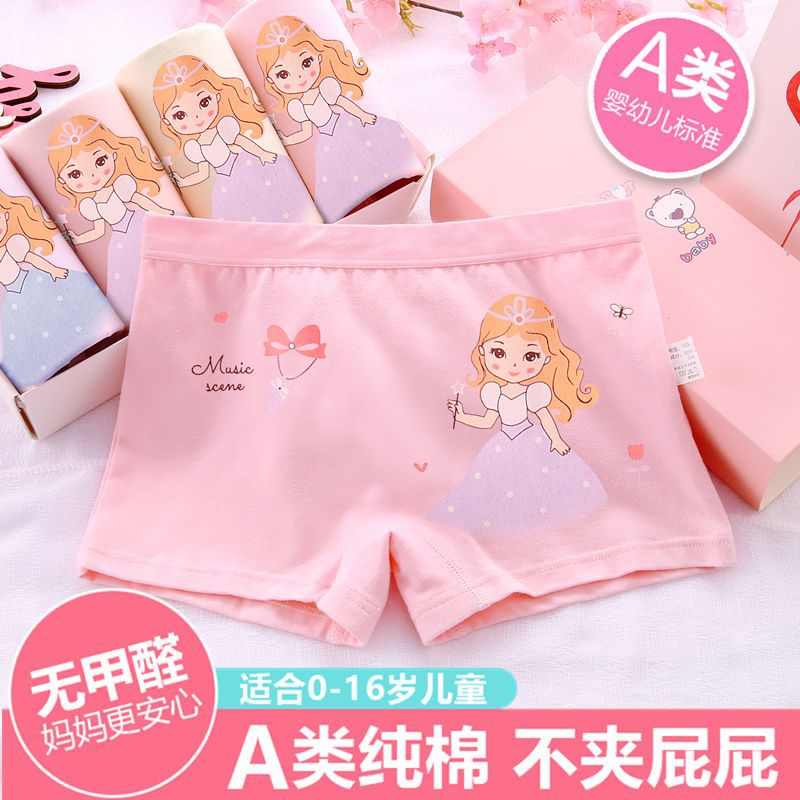 | nameOriginal | Girls' Underwear Pure Cotton Children's Boxer Shorts Class A Baby Middle and Old Children's Four Corner Little Girls Students Don't Pinch Butts |
